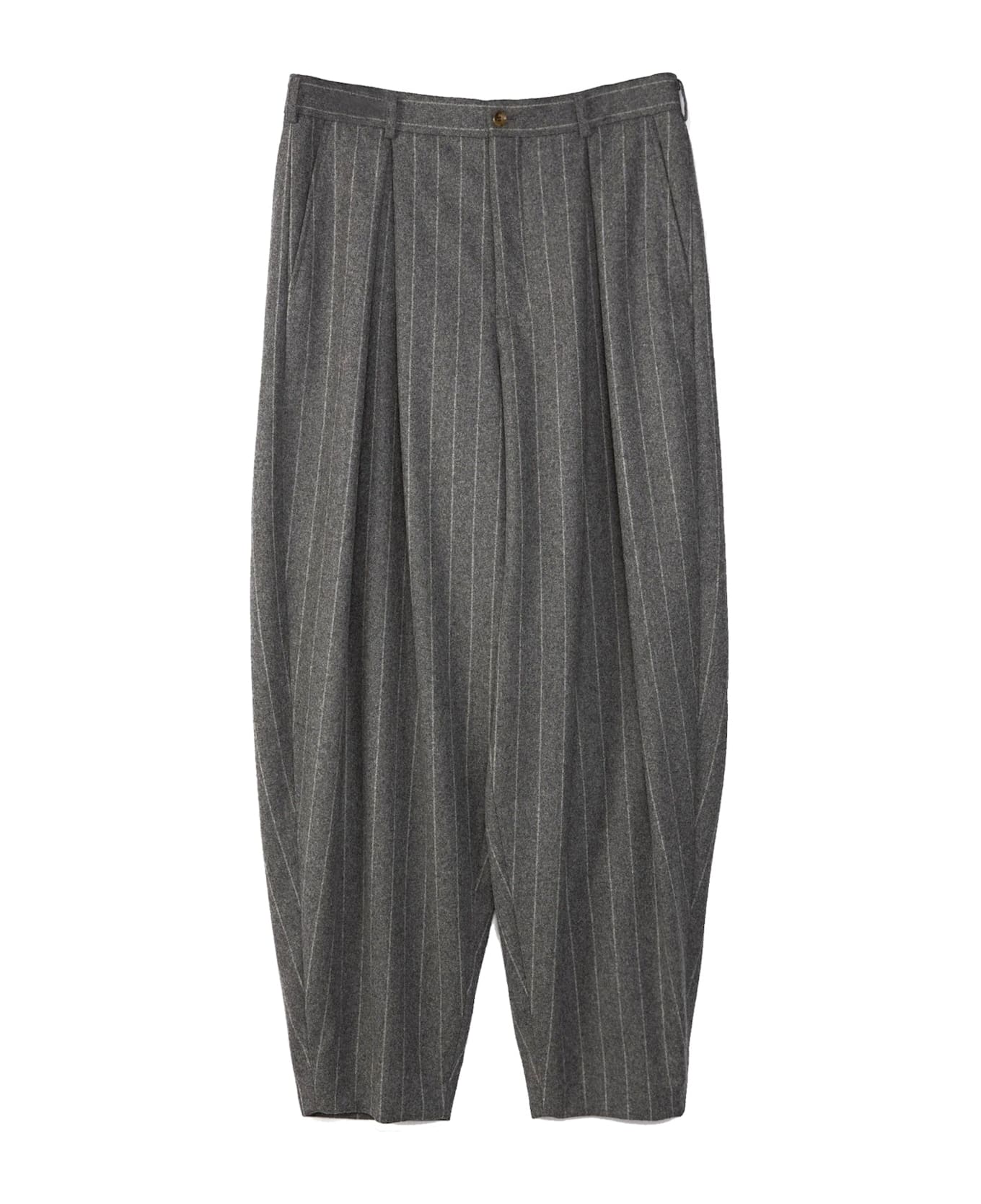 Composition: 100% Virgin wool Belt loops Button and zip closure Runway style Wide leg Highwaisted Two slanted side pockets Pinstriped wool felt Asymmetric back pockets Carrot fit Made in Japan