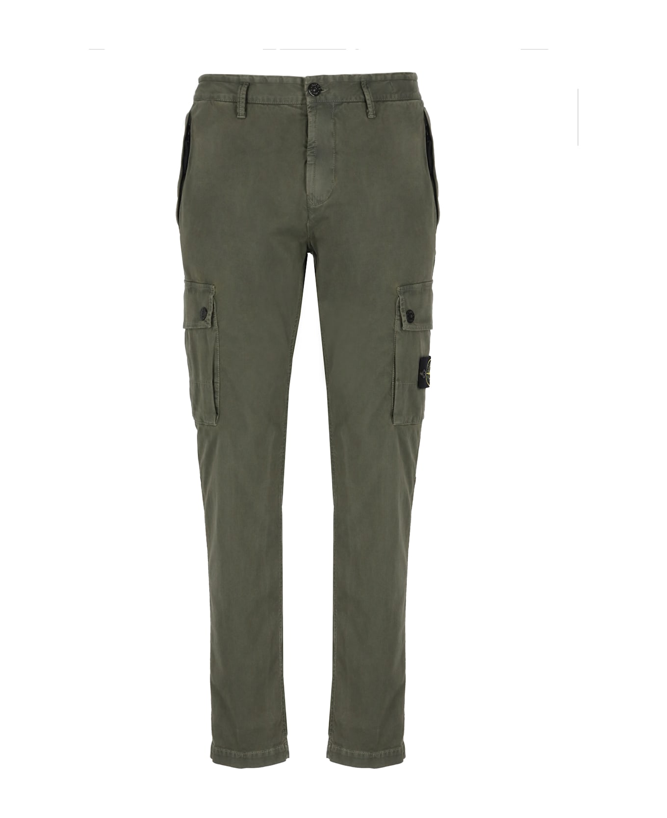 - Dark green Stone Island cotton pants for woman - Belt loops - Front zip and button fastening - Two side pockets with zip - Two cargo pockets with side flap - One rear welt pocket with button - Side contrasting color Iconic logoed and removable patch