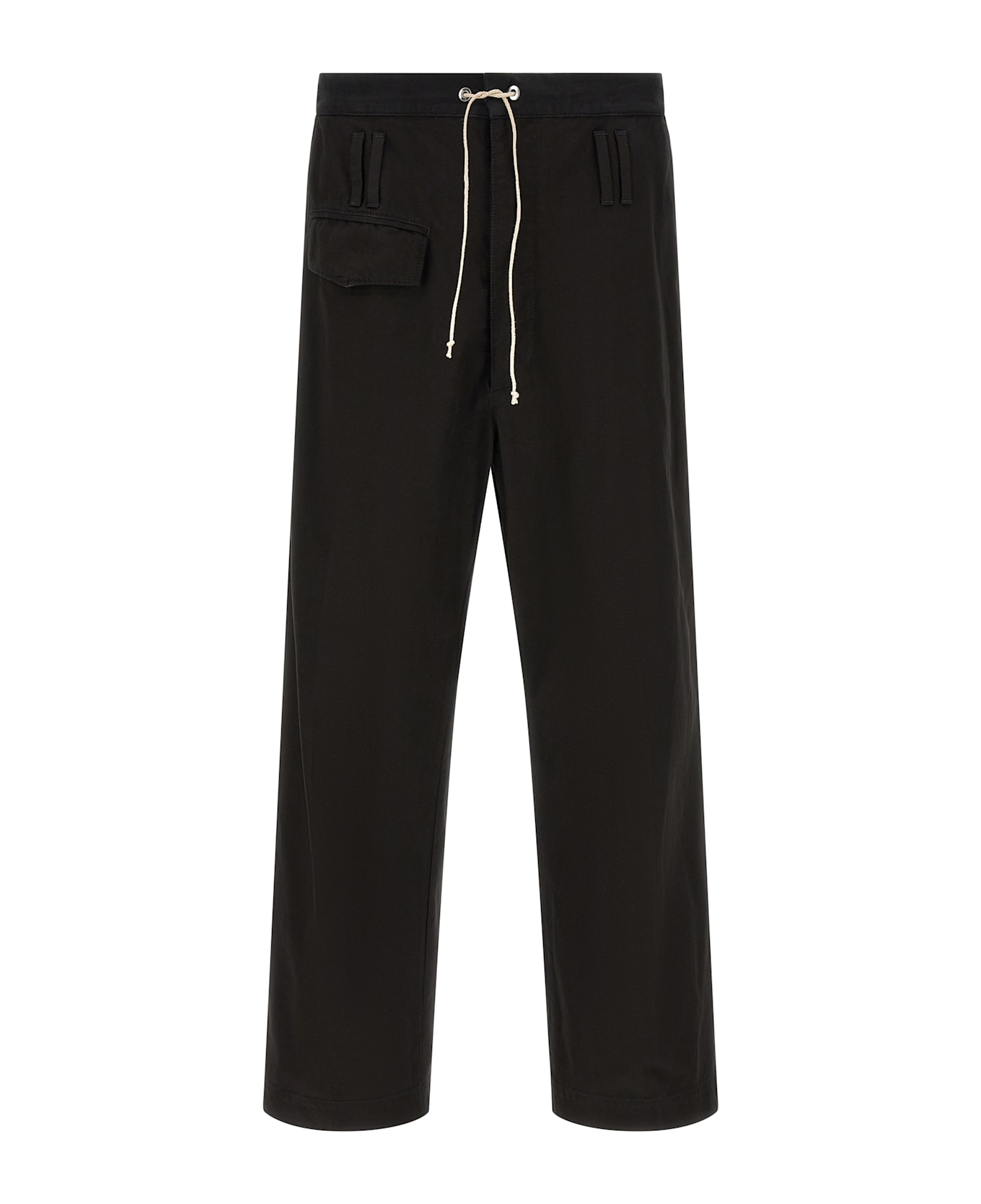 'Trireme' structured cotton trousers with a slight washed effect, panel-dyed and finished with a delicate softening treatment, striped lining, slightly flared wide leg, stretched pleat, back pincers, drawstring elastic waistband, button closure and front hook, pockets.