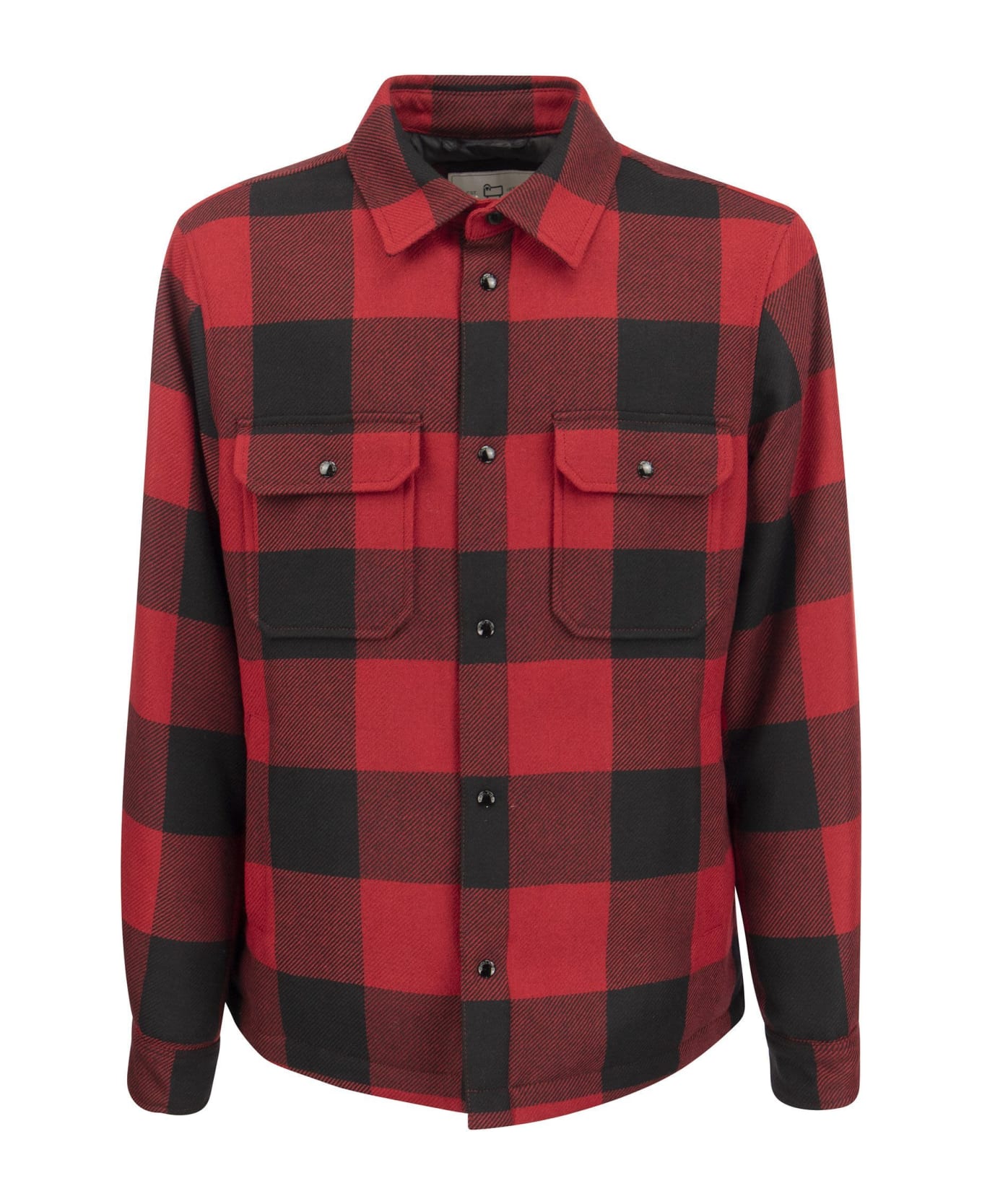 This comfortable men's shirt jacket is a proud celebration of Woolrich's archive paintings. Crafted from a wool blend, it is filled with duck down and lined with quilted nylon for added warmth. Its clean silhouette is embellished with classic workwear-inspired details, including a pointed collar and press stud pockets. - Press stud fastening - 2 breast pockets with press studs - 2 welt pockets on the front - Cuffs with press studs - Classic pointed collar DESIGNER ID: CFWOOS0067MRUT3046 5321