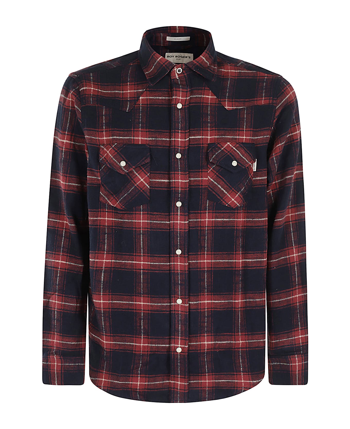 Check Shirt - Roy Rogers - Bordeaux and blue color - Cotton flannel fabric with check pattern - Classic collar - Long sleeve with cuff and buttons at hem - Chest pockets with flap and button - Front button closure - Regular fit