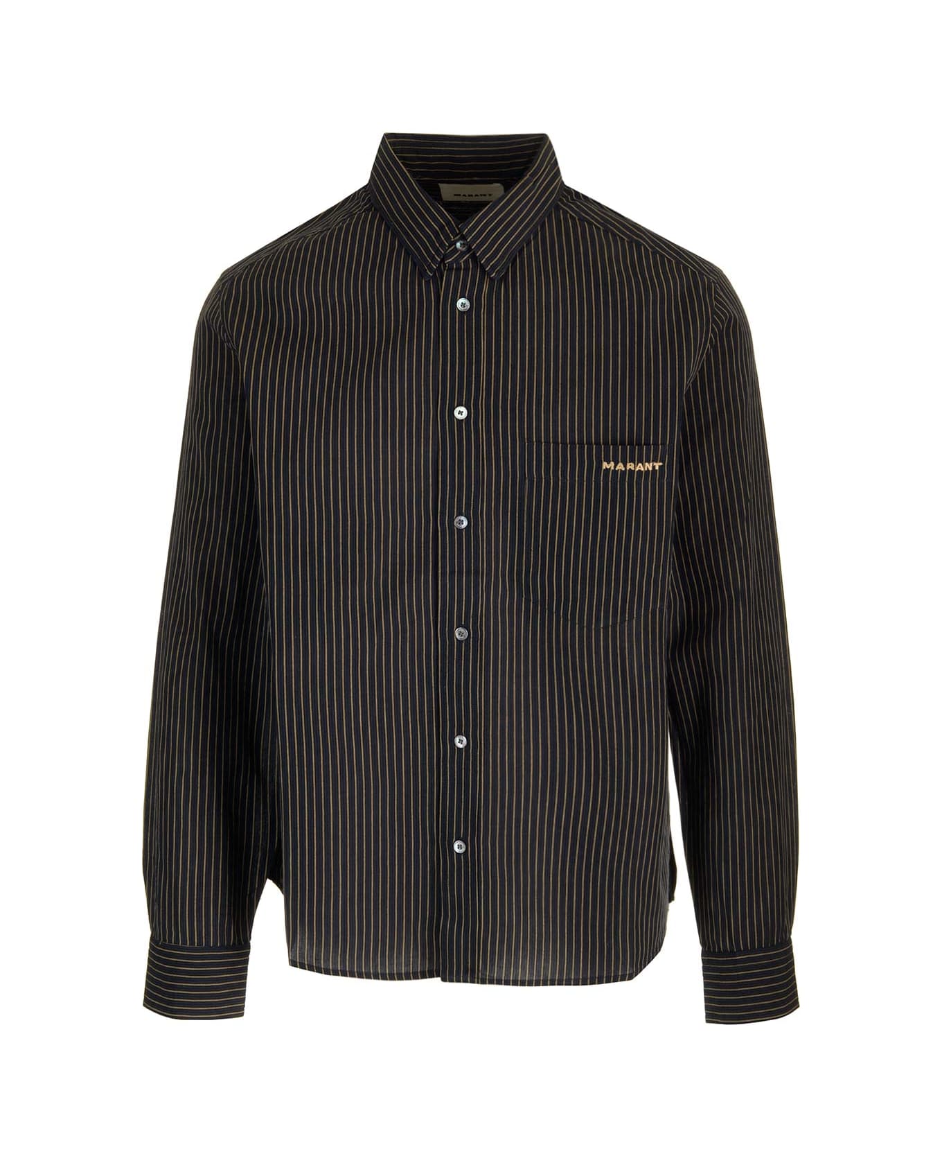 'Jasolo' striped shirt from Marant in black cotton with yellow stripes, classic collar, visible buttons, chest pocket with embroidered MARANT logo and standard fit. Composition: MAIN MATERIAL:100% COTTON EMBROIDERY THREAD 1:100% POLYESTER