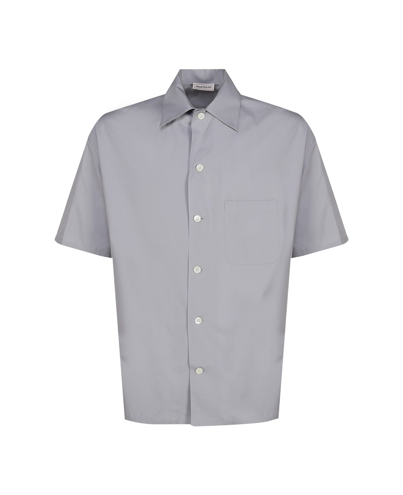 Dove grey/tonal Logo Shirt from Alexander McQueen -Short sleeved cotton shirt -Straight hem -Logo on the back -Front pocket detail -Made in Italy -Colour: Grey -100% Cotton