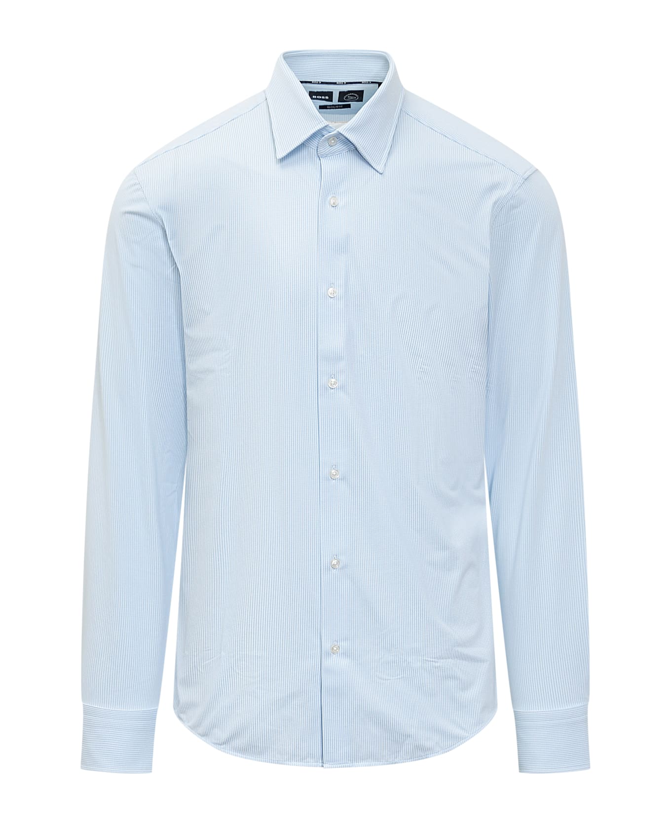 Long-sleeved shirt. Classic collar. Button closure. Button cuffs. Striped pattern.