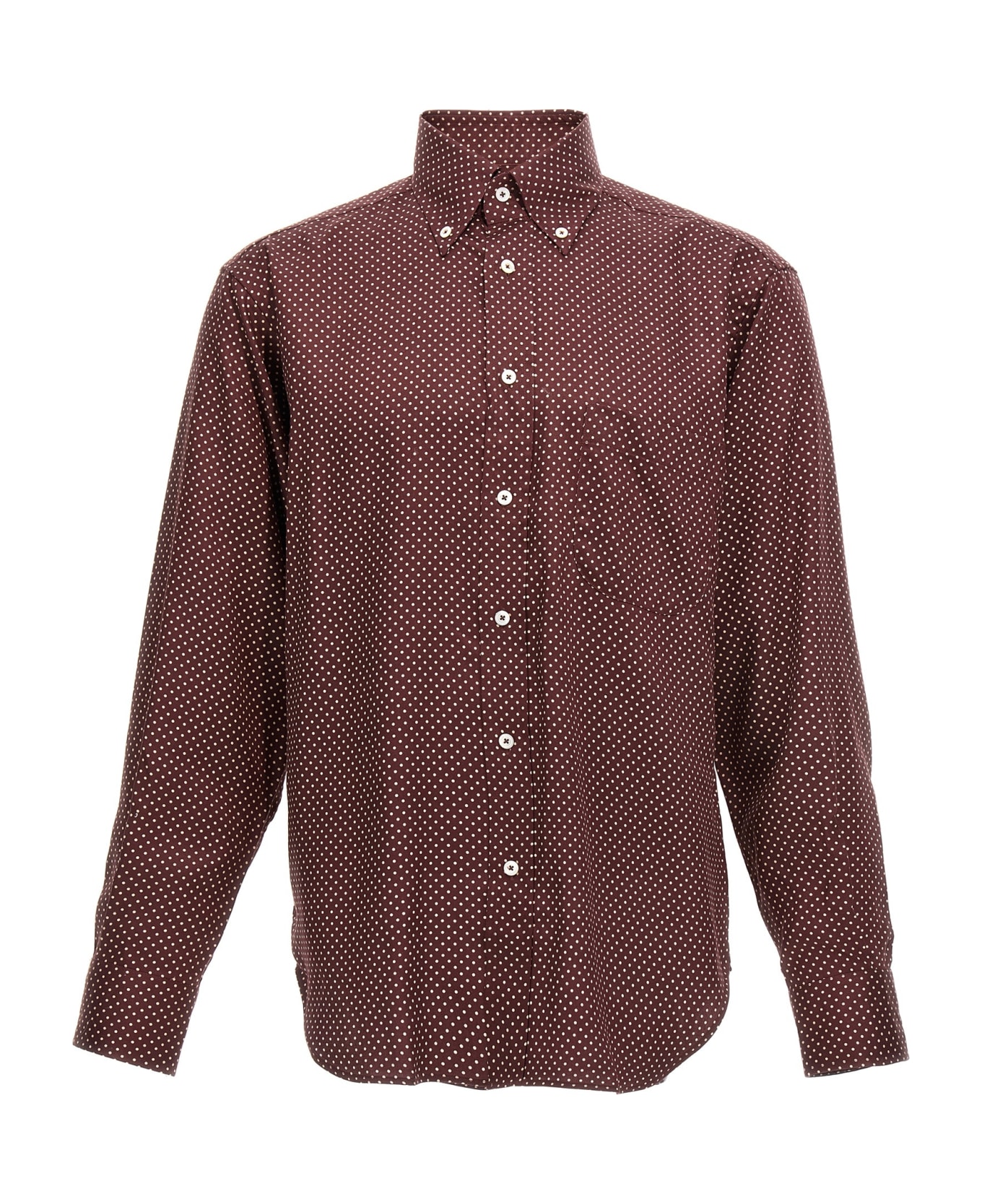 Polka dot print lyocell shirt with button closure, long cuffed sleeves.