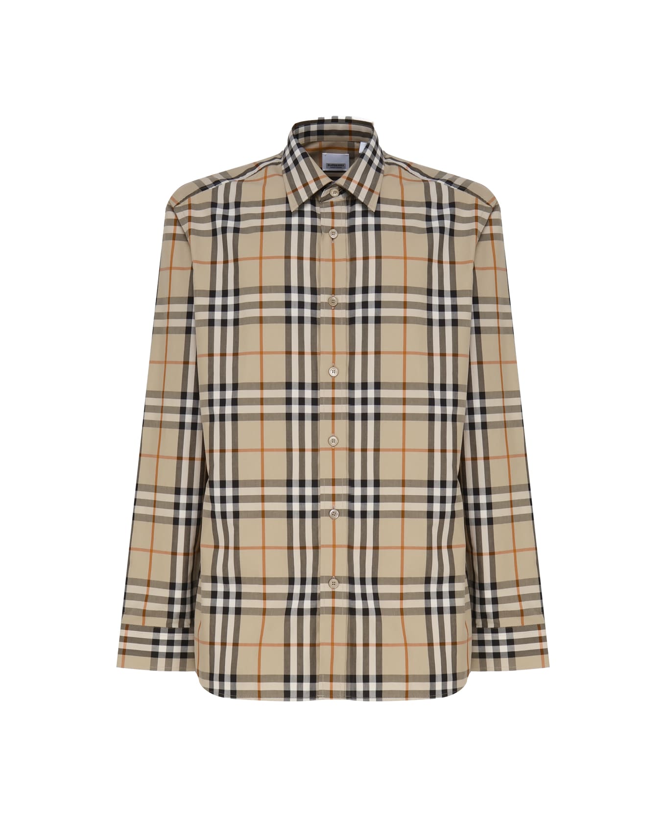 -Vintage check pattern -Pointed collar -Button front closure -Long sleeves -Curved brim -Made in Italy -Colour: Beige Composition: 100% Cotton