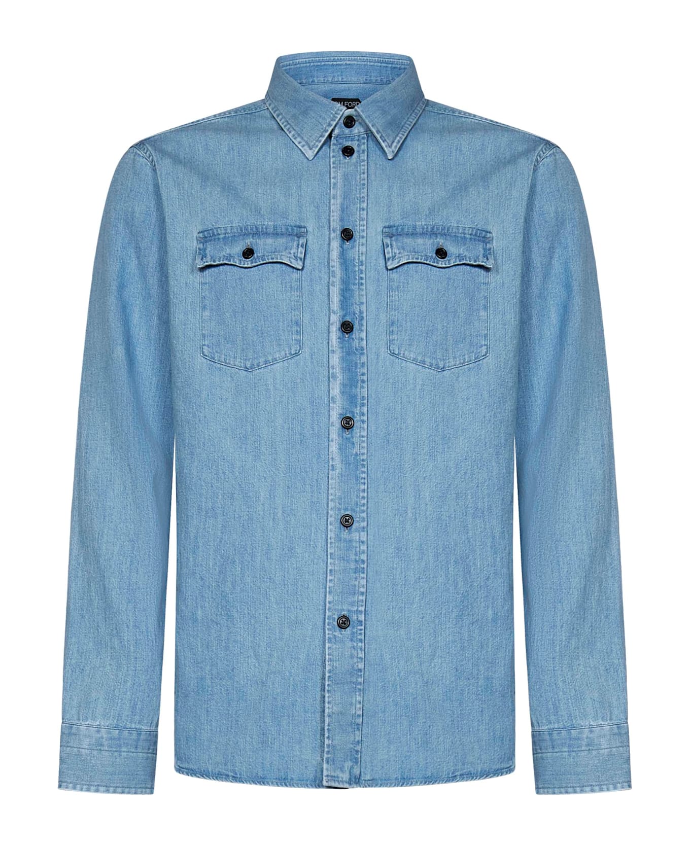 Front Button Closure Pointed Collar; Long Sleeves Buttoned Cuffs Flap And Buttoned Chest Pockets Rounded Hem Regular Fit Color: Light Blue , 100% Cotton Made In Italy