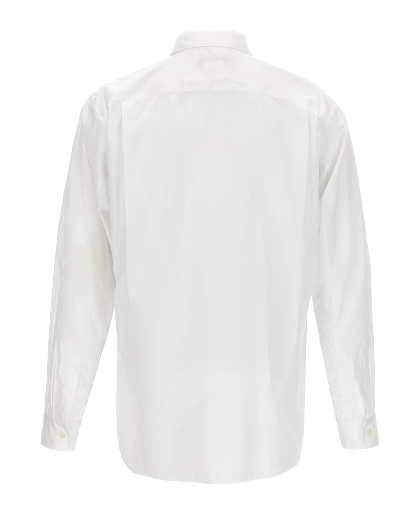 Cotton poplin shirt with two front layers of tulle, front button closure, breast pocket, long sleeves with cuffs.