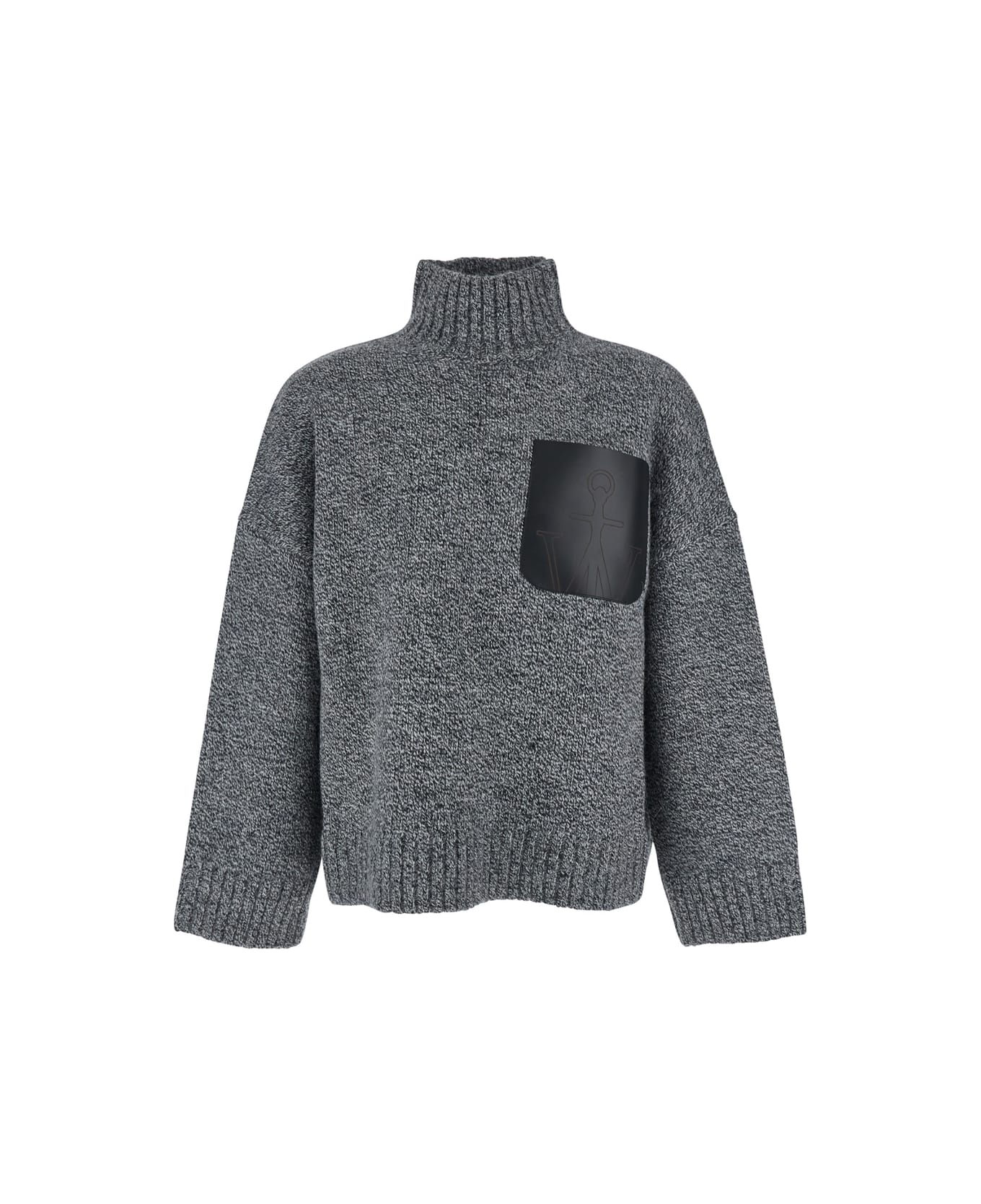 Grey Sweater With High Neck And One Front Patch Leather Pocket In Wool Blend Man from J.W. Anderson