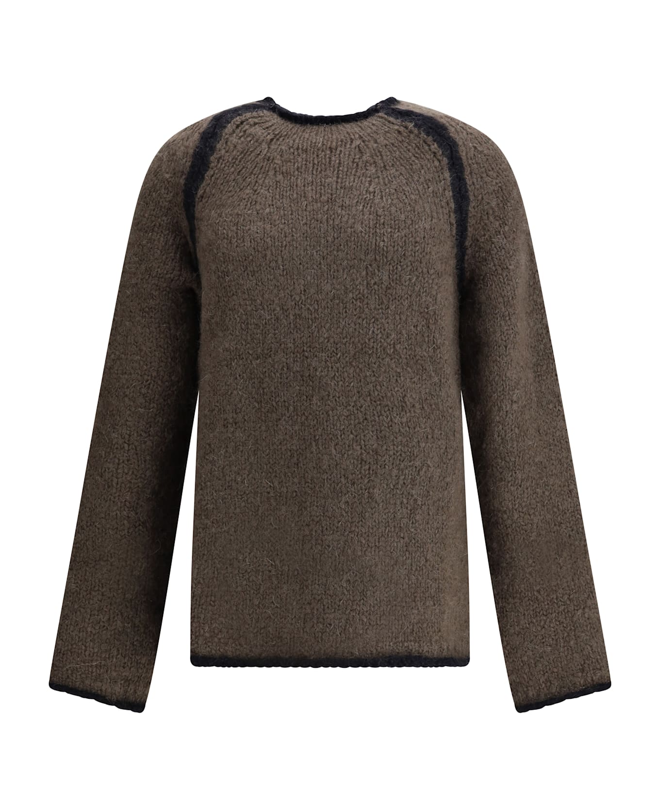 The rider roundneck in steel mohair is crafted from fine italian mohair and wool yarn, designed with a relaxed, straight fit. featuring a mock neckline, rolling collar, cuffs, and hem, it includes raglan shoulders with contrast knit details and reverse stitching along the side seams. this garment naturally evolves with wear: the carefully sourced yarn and knit construction allow it to shape to the wearer over time, developing a unique, personal character