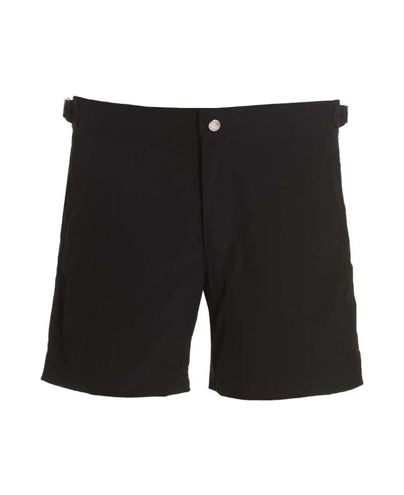 Costume in tessuto tecnico, ricamo logo frontale tono su tono, chiusura zip e bottone, dettaglio cinturini regolabili in vita, tasche, slip interno in rete. Composition: 100% pa