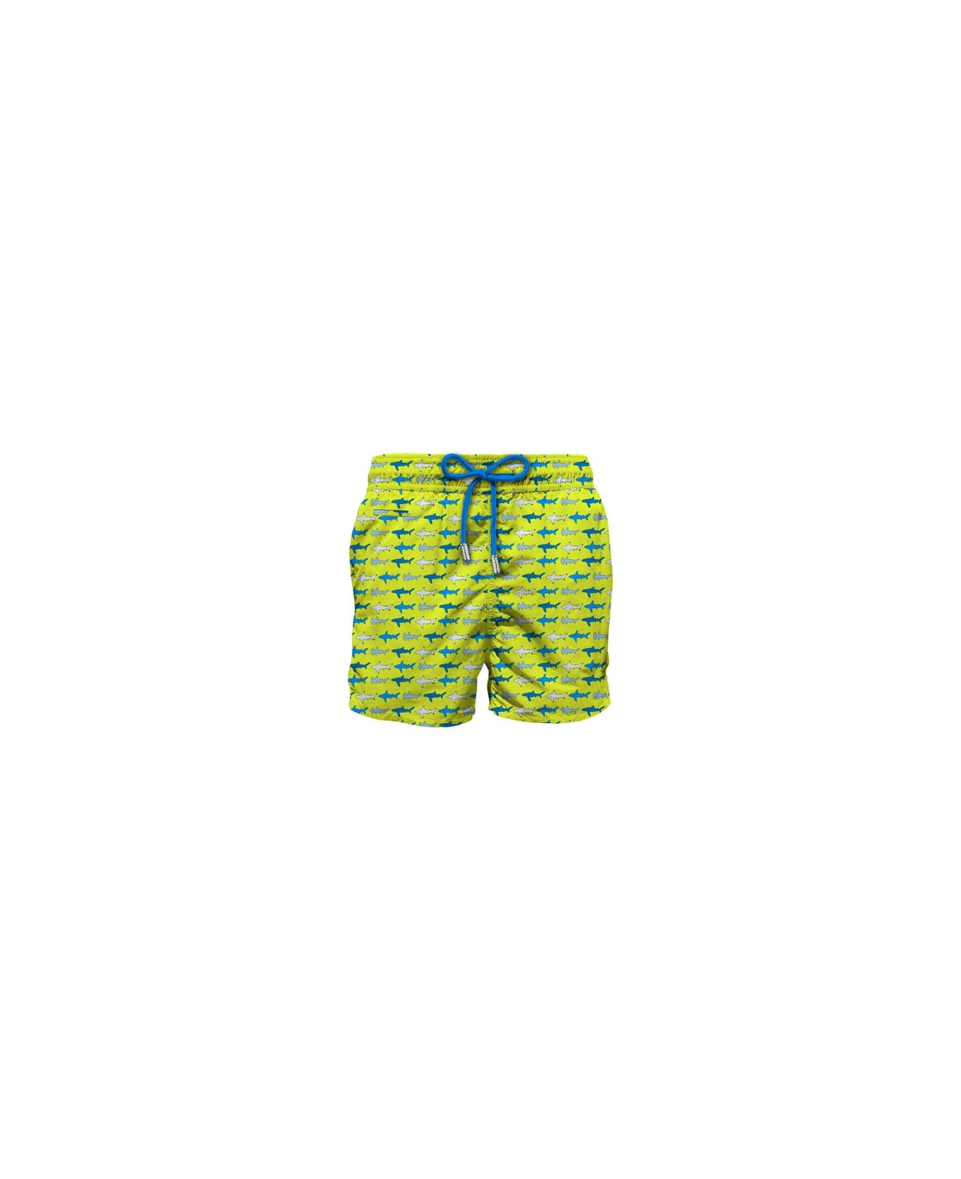 Short patterned swimsuit from MC2 St. Barth elastic waist with coulice,internal mesh lining, welt pocket,back pocket with button. Composition:100% Polyester