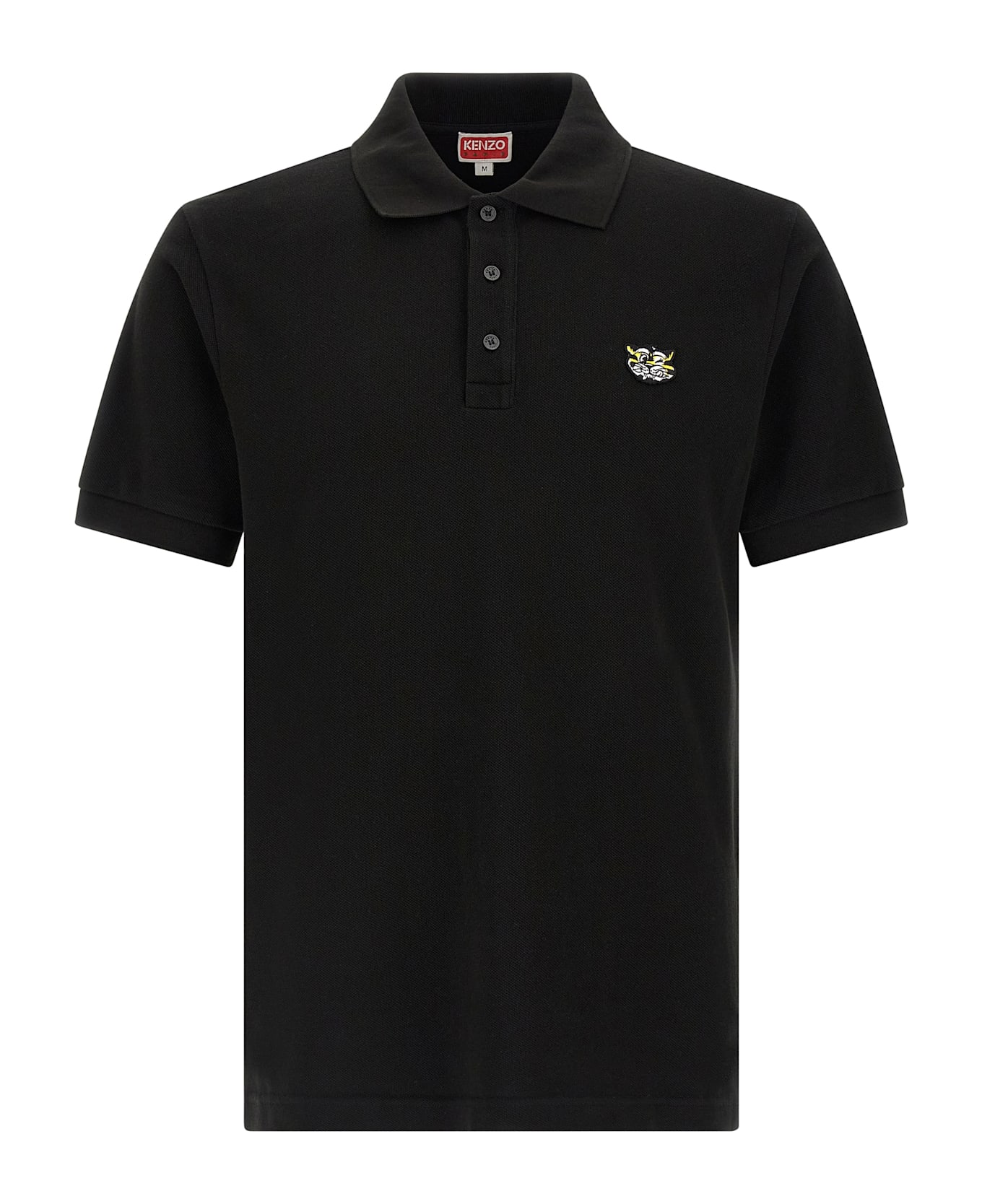 Cotton piqué polo shirt, front 'KENZO Wild Tiger' patch, collar and buttons, short sleeves, tone-on-tone logo embroidery at the back.
