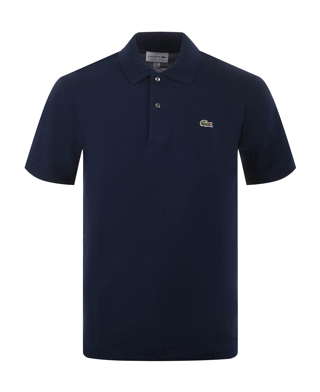 Lacoste polo in lightweight cotton pique. Ribbed collar. Short sleeve. 2-button closure. Front logo. Classic fit. Size in photo 4 French (M) 63% cotton, 31% polyester, 6% elastane