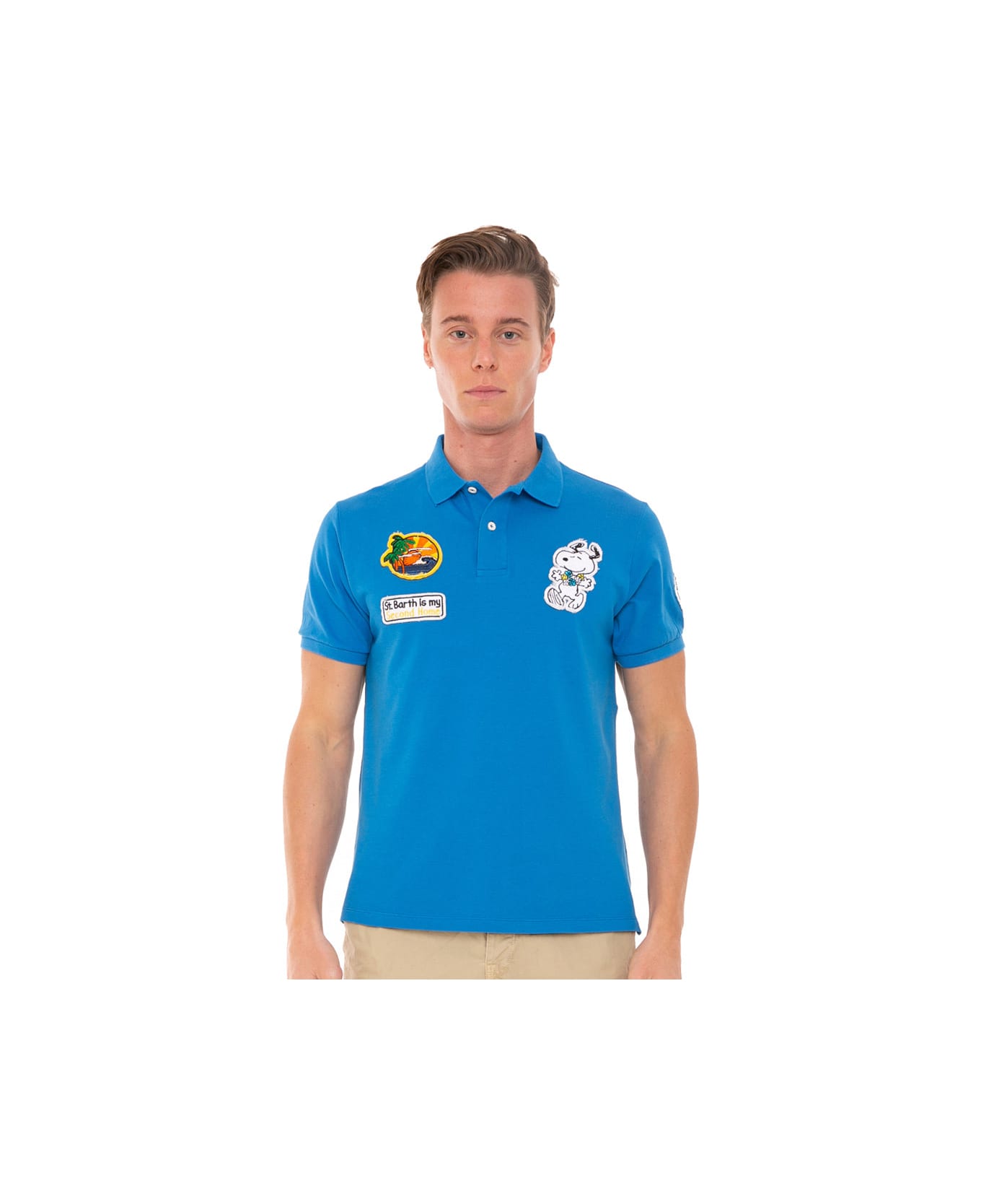 Man stretch piquet polo Snoopy patch on bluette solid color Regular fir Composition: 100% cotton Snoopy - Peanuts Special Edition