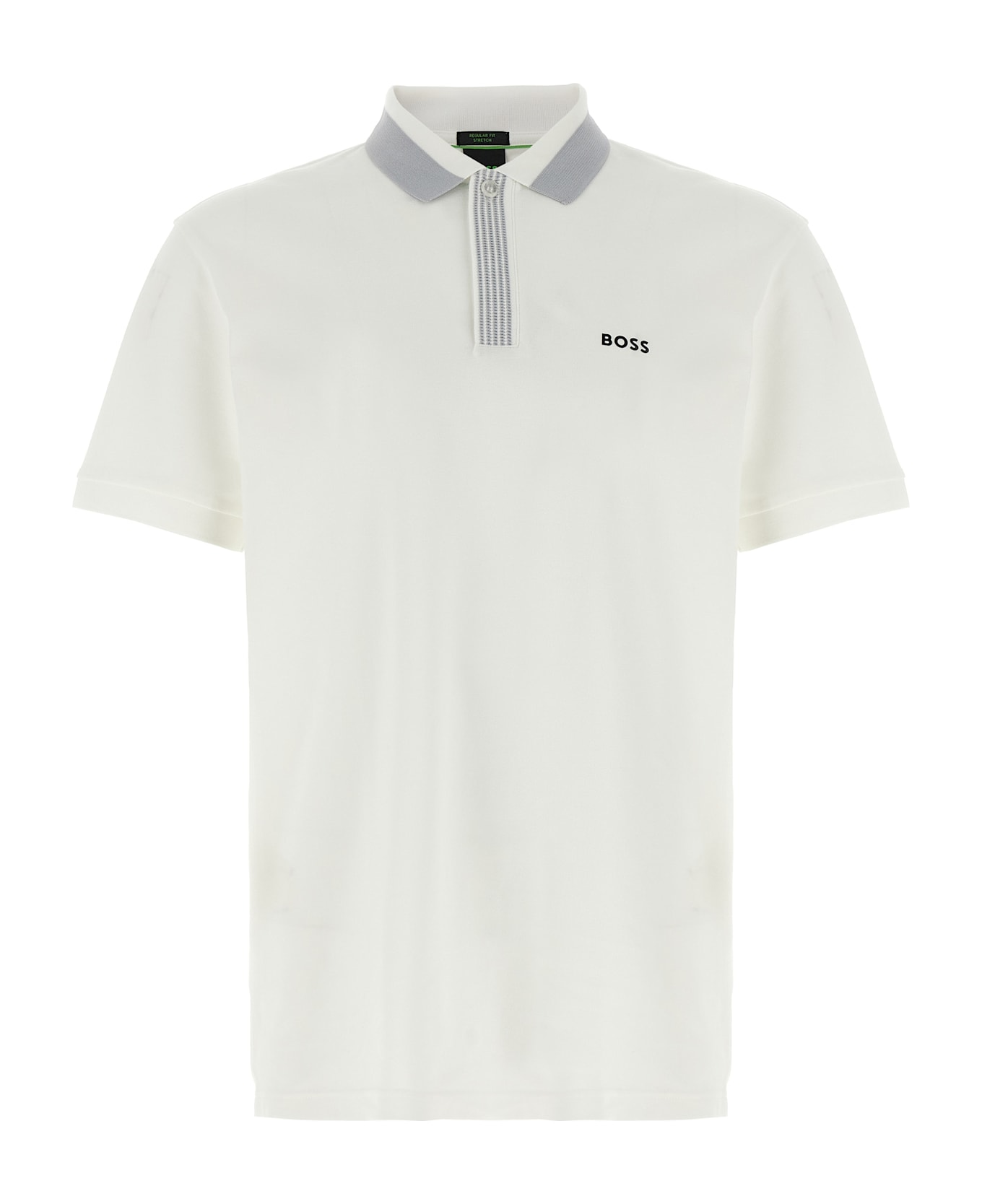 'Paddy 3' stretch cotton polo shirt with two-tone collar, buttons concealed by crochet fabric, short sleeves.
