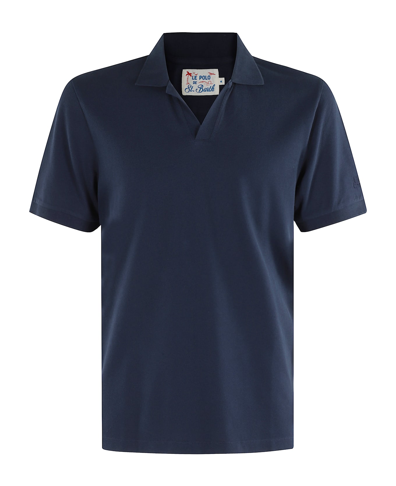 Fraser polo shirt - MC2 Saint Barth - Blue color - Linen fabric - Buttonless polo collar - Short sleeve - Embroidered logo on left sleeve - Regular fit