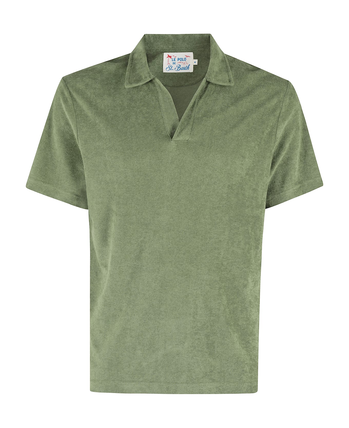 Sponge MC2 Saint Barth polo shirt Military green Classic collar Short sleeve V-neckline