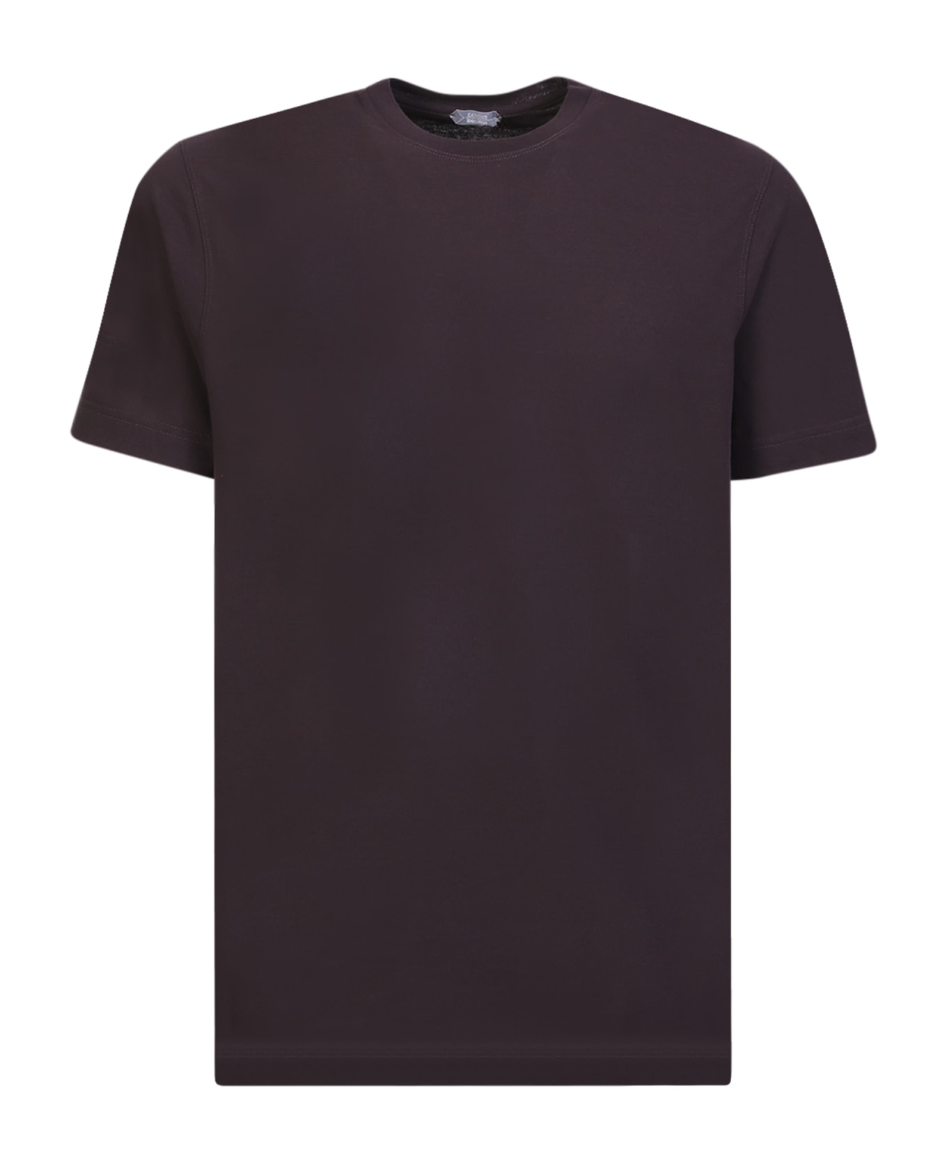 Roundneck. Short sleeves. Tonal stitching. Straight hem. Color: brown