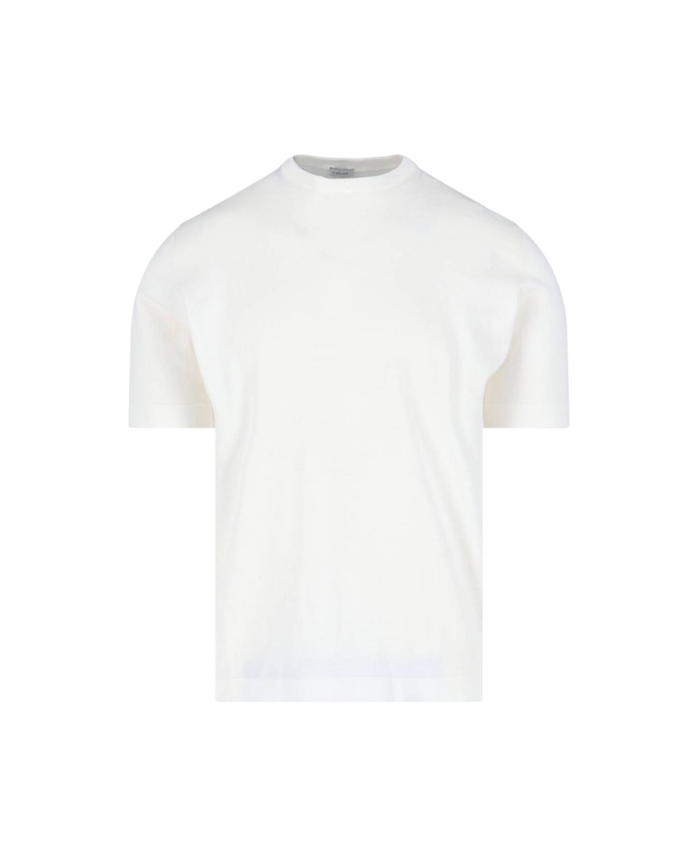 Caruso classic white cotton crew neck t-shirt with short sleeves, straight hem.