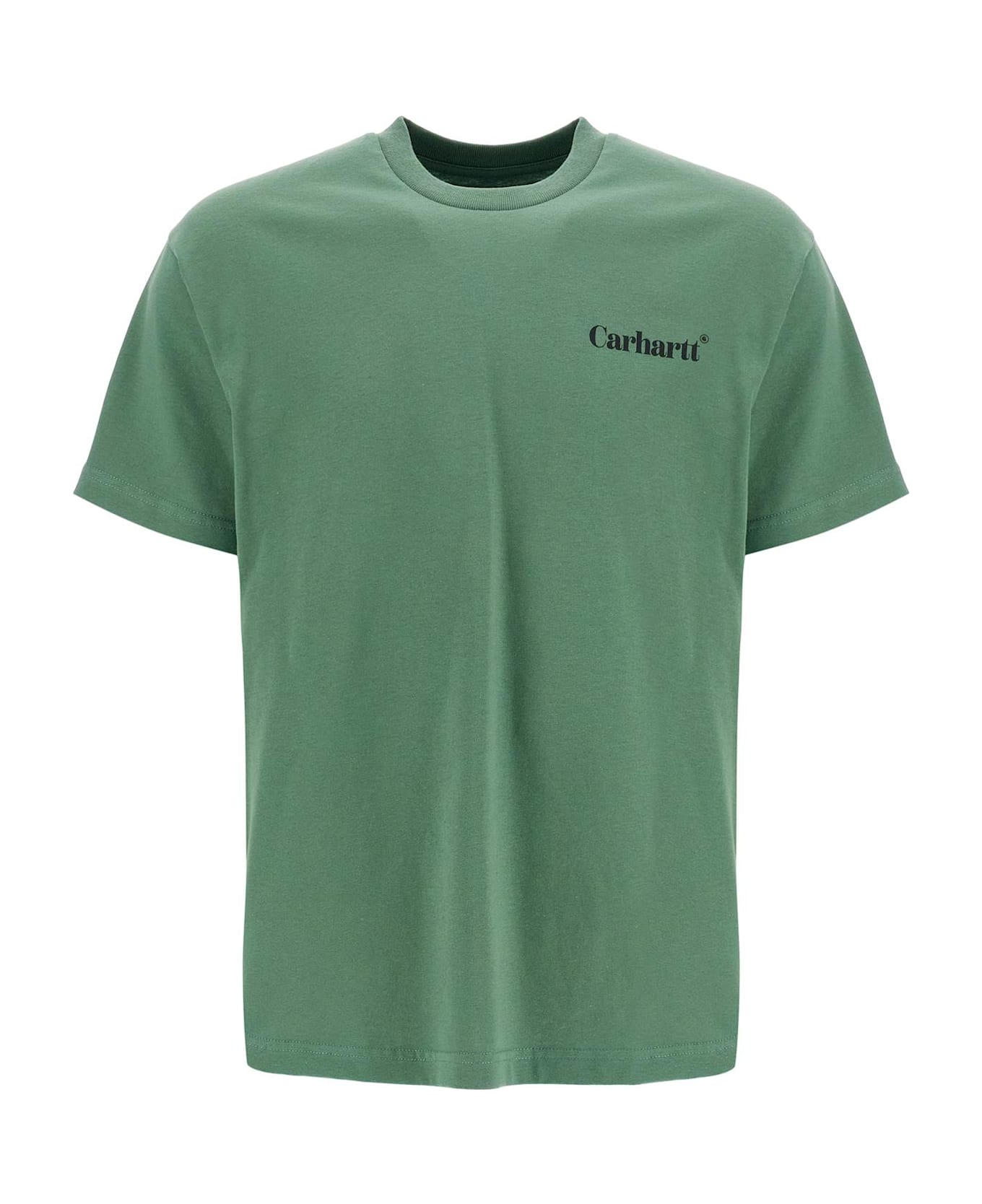 This Carhartt WIP crew neck t-shirt is made of organic cotton jersey and features a Fold Duck print on the back and a logo detail on the chest. It has a relaxed fit and the model is 182 cm tall, wearing a size M. Composition: 100%CO-O Composition: 100% Organic Cotton Single Jersey, 210 G