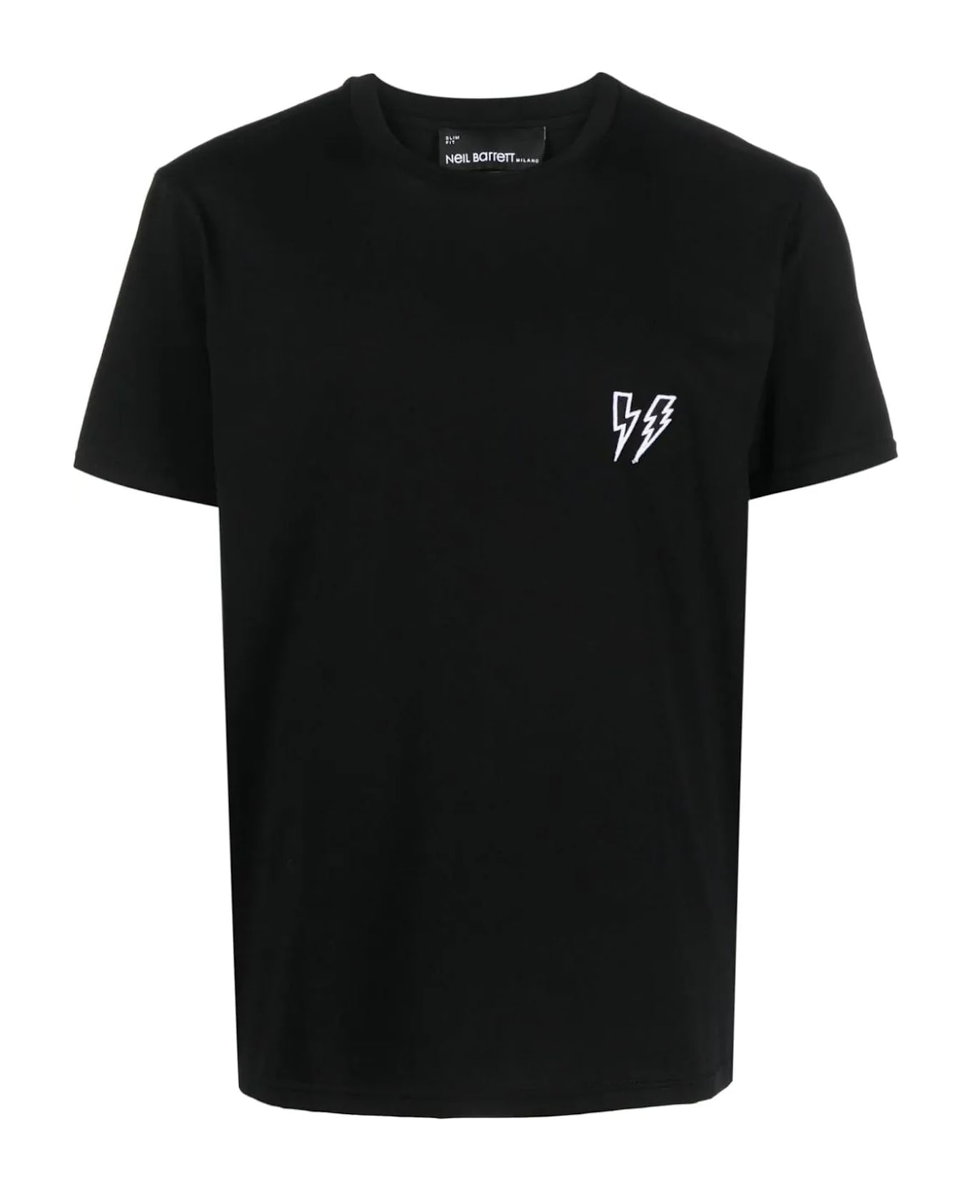 Black cotton T-shirt featuring jersey texture, signature Thunderbolt embroidery, crew neck, short sleeves, straight hem Composition: Cotton, 100%