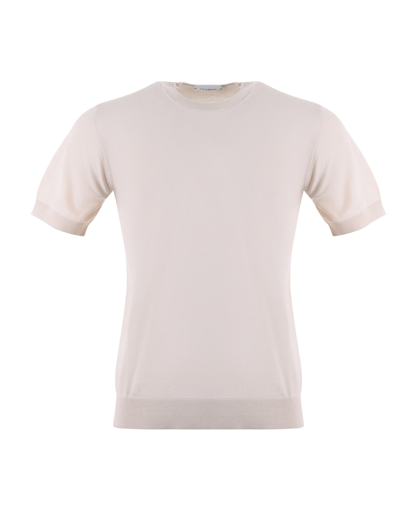 Paolo Pecora T-shirt in light beige thread. Ribbed crew neck. Short sleeves. Ribbed cuffs and bottom. 100% Cotton Measurement in photo L
