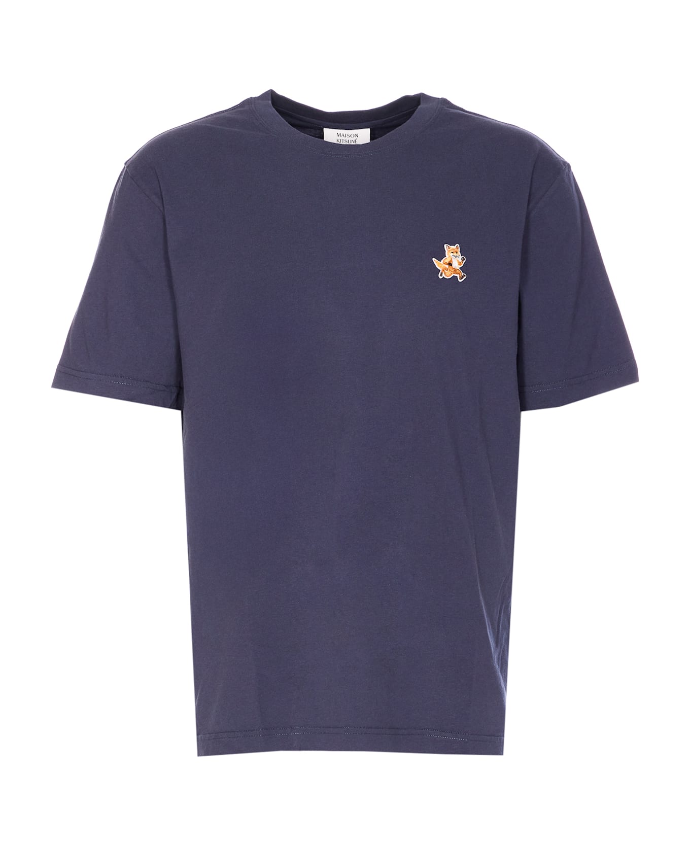Maison Kitsune' blue Speedy Fox patch logo, crewneck, embroidered logo on the front