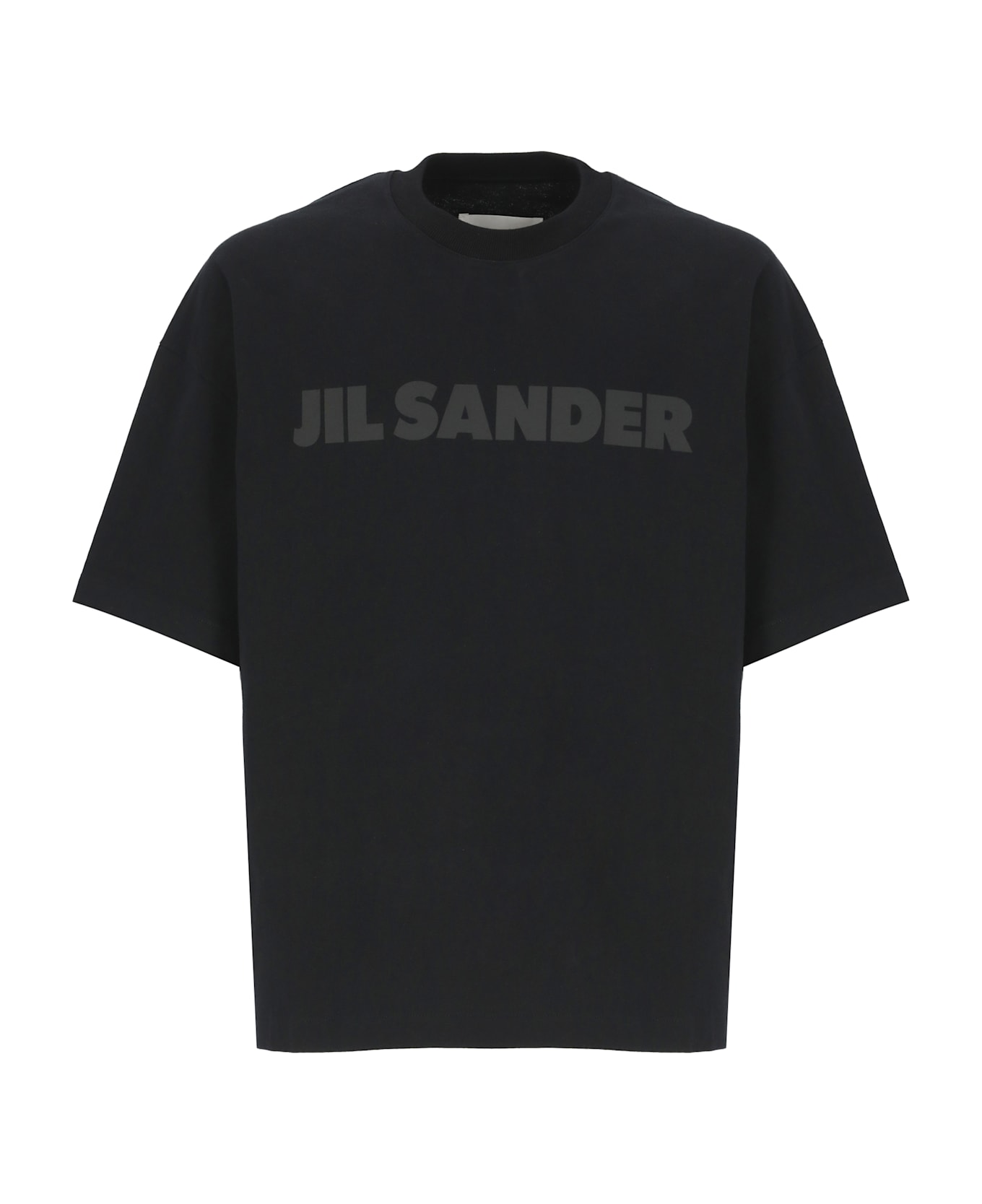 - Black Jil Sander cotton t-shirt for man - Crew neckline - Short sleeves - Front tone on tone logo Composition: 100% Cotton