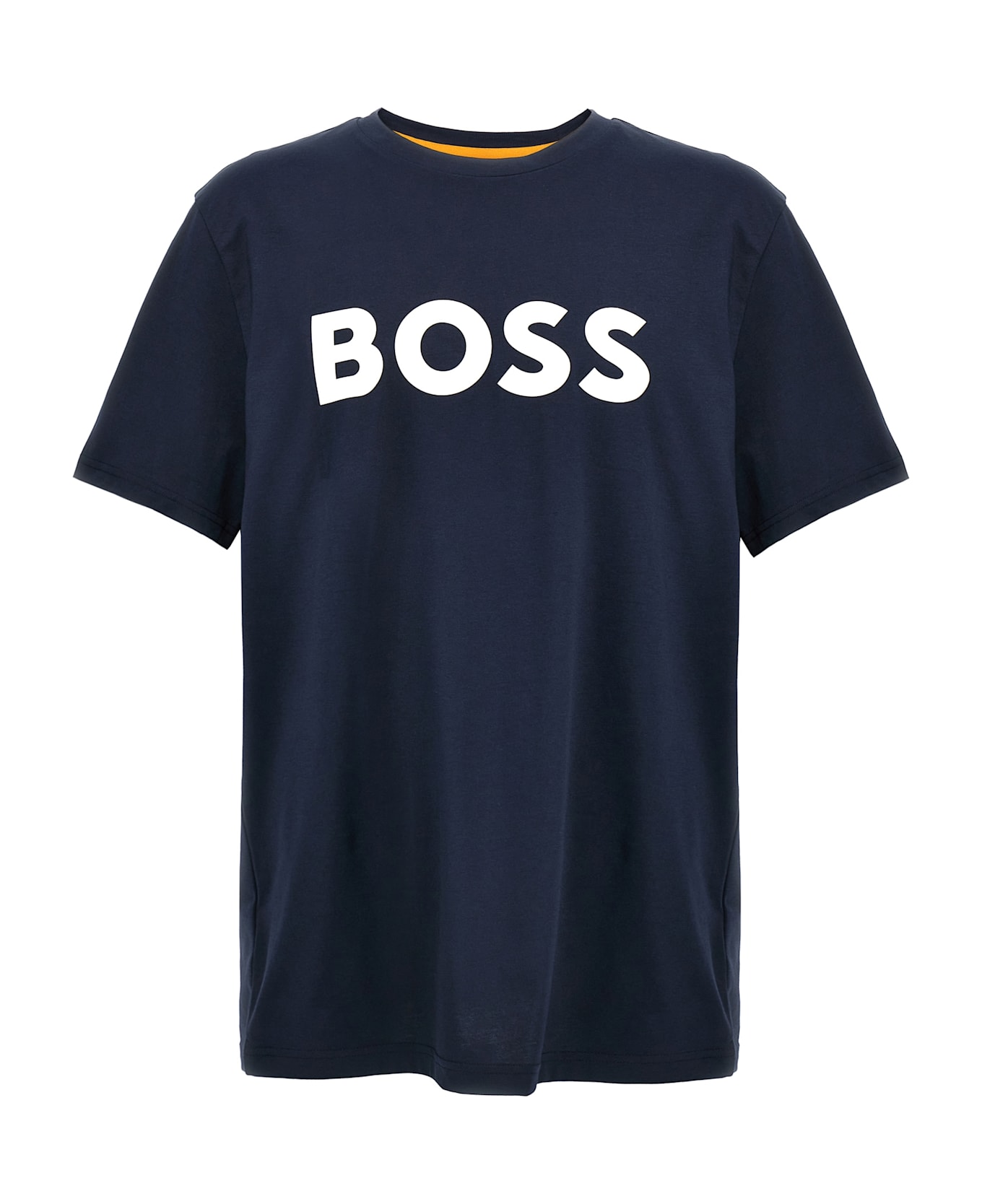 'Thinking1' cotton crew neck t-shirt with front logo print and short sleeves.