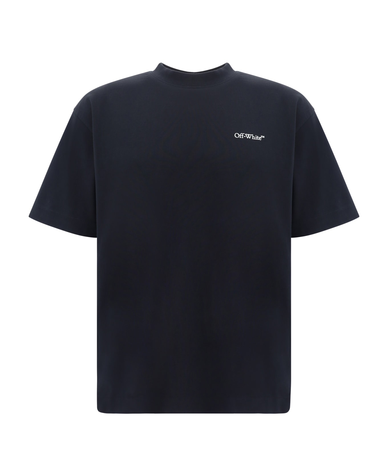 Cotton windy arrow skate t-shirt by off-white, features ribbed crew neck, contrasting maxi print on back, iconic brand monogram on front, monochrome pattern, regular fit.