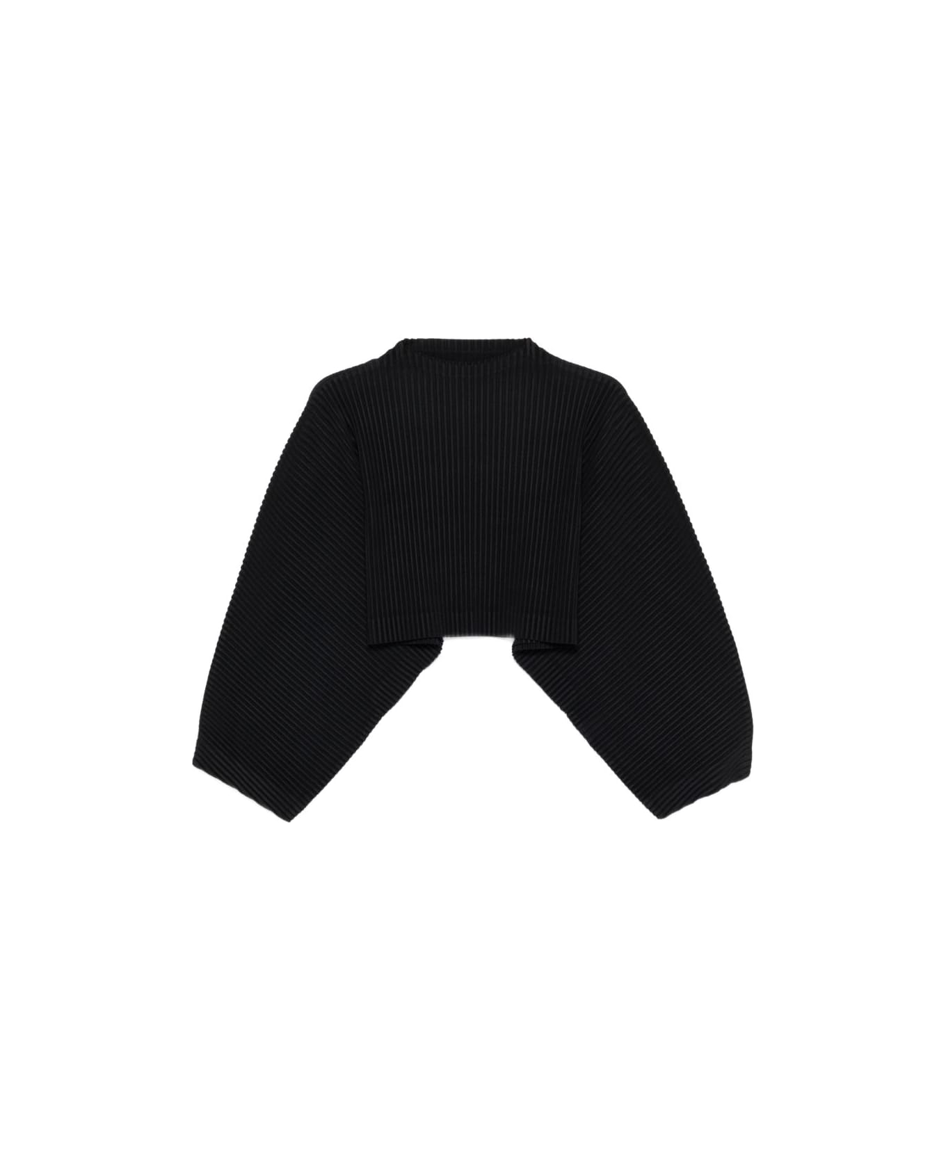 black pleated design mock neck long sleeves button-detail on the sleeve