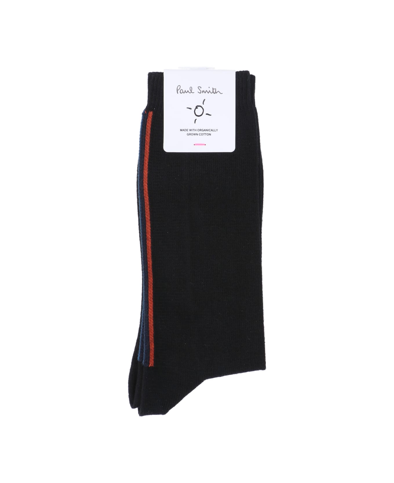 Paul Smith "Vertical Artist Stripe" logo socks in black cotton blend with multicolor details, vertical stripe embroidery, white logo intarsia, ribbed trims.