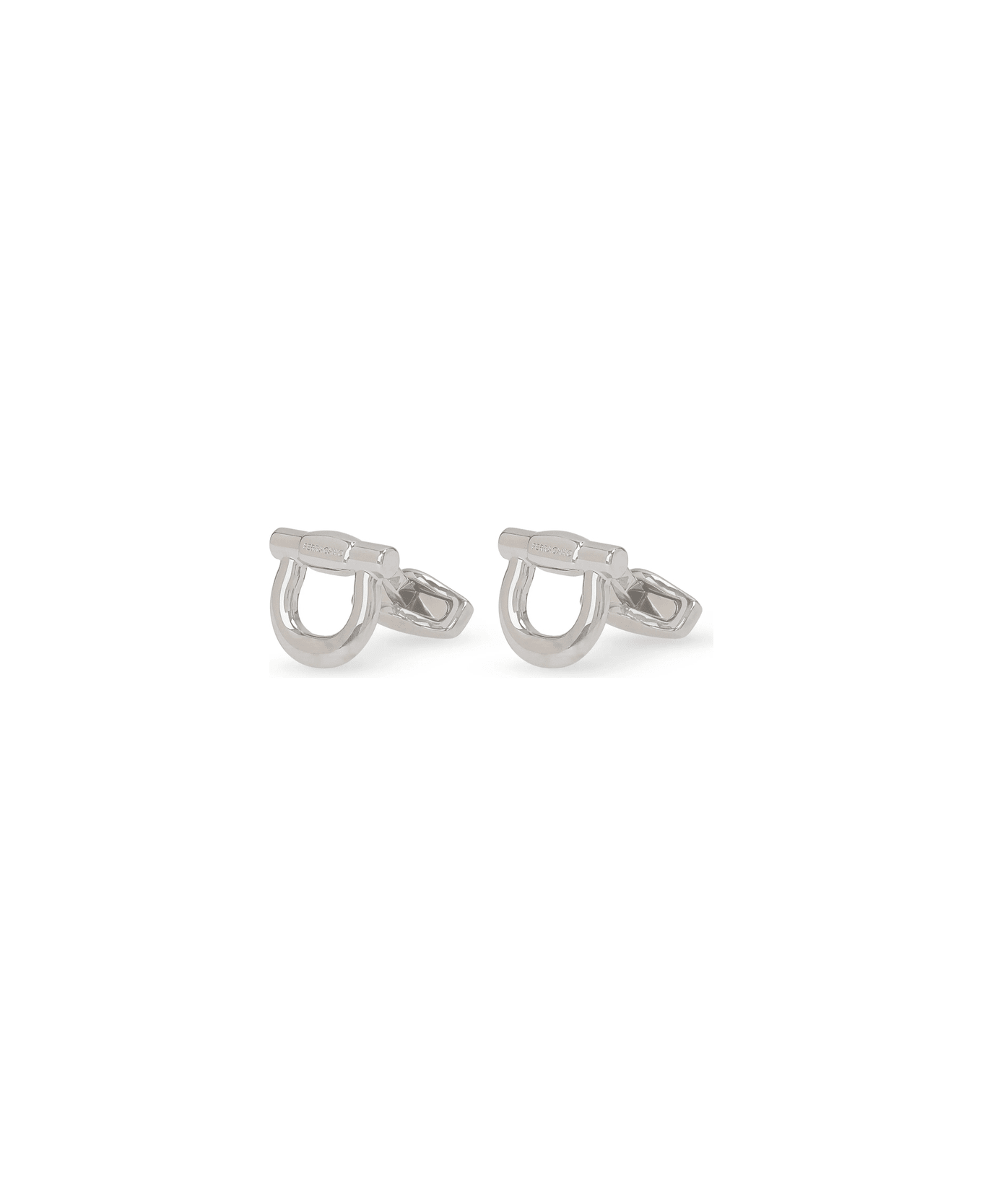 silver-tone brass polished finish Gancini plaque engraved logo T-bar fastening