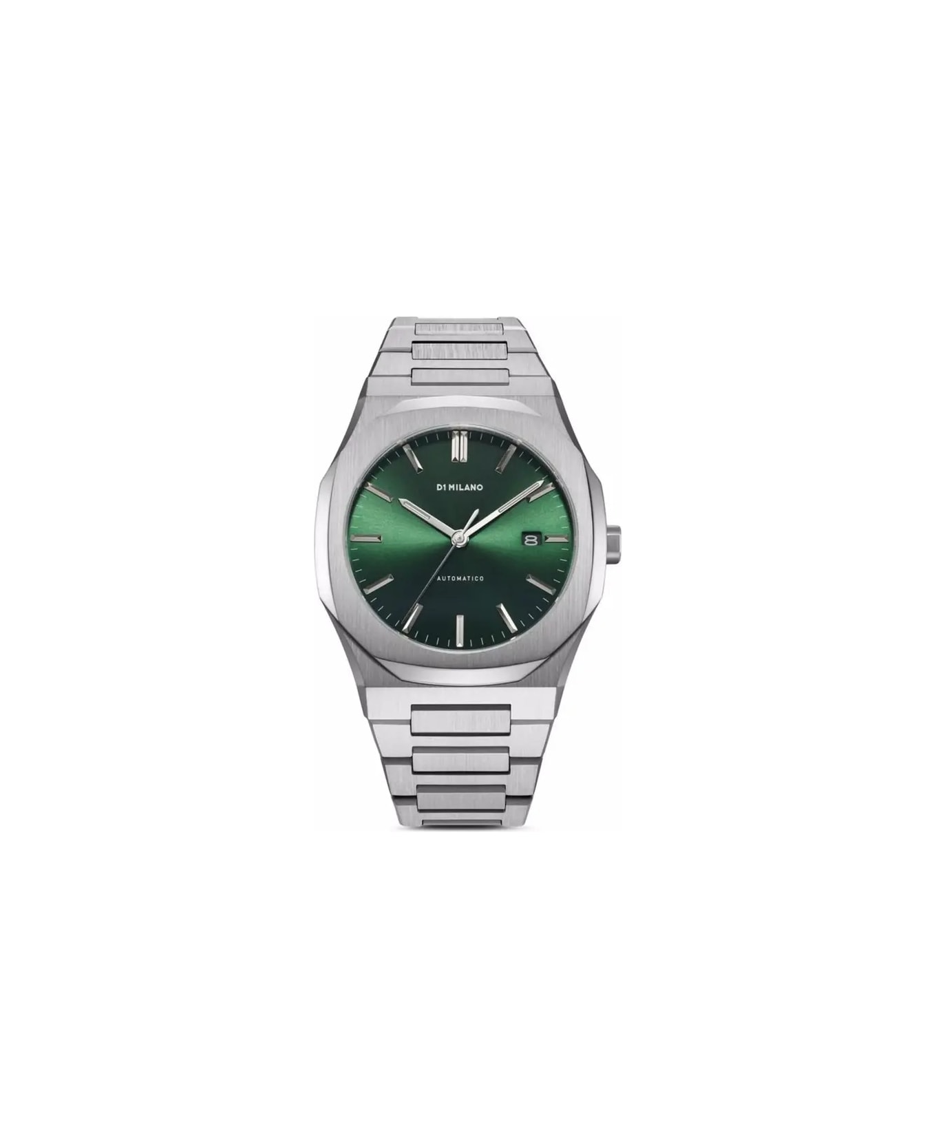 D1 Milano watch, Ultra Thin 40mm Dusky Green model, a masterpiece of minimalist sophistication. Admire the elegance of a 40mm case, perfectly balancing a bold presence with understated charm. The dark green dial is embellished with a sunburst finish that gives it an irresistible luminosity beyond its size. This Ultra Thin timepiece doesn't just tell the time, it makes a statement with every tick. The green hue of the dial, both subtle and distinctive, adds a touch of boldness to the classic design. It is a wrist companion that transitions effortlessly from formal events to informal dates, embodying the spirit of versatility and style. Model with butterfly clasp, green dial with sunburst finish, silver steel hands & indexes. Glass: sapphire crystal. Movement: Citizen Miyota 1L22, Quartz. Water Resistance & Weight: 5ATM,55g.