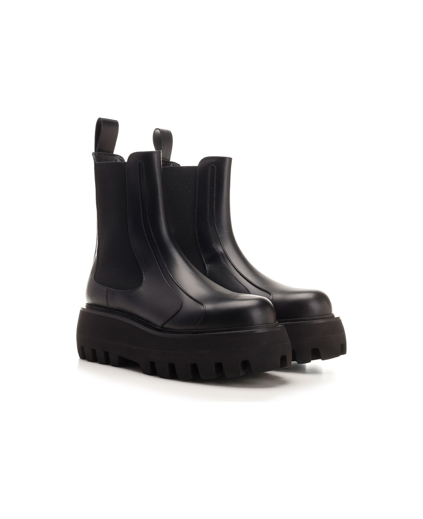 Smooth black calfskin, round toe and thick but lightweight serrated sole with embossed inverted skull detail. Composition: Bos Taurus/75% PL 25% EL
