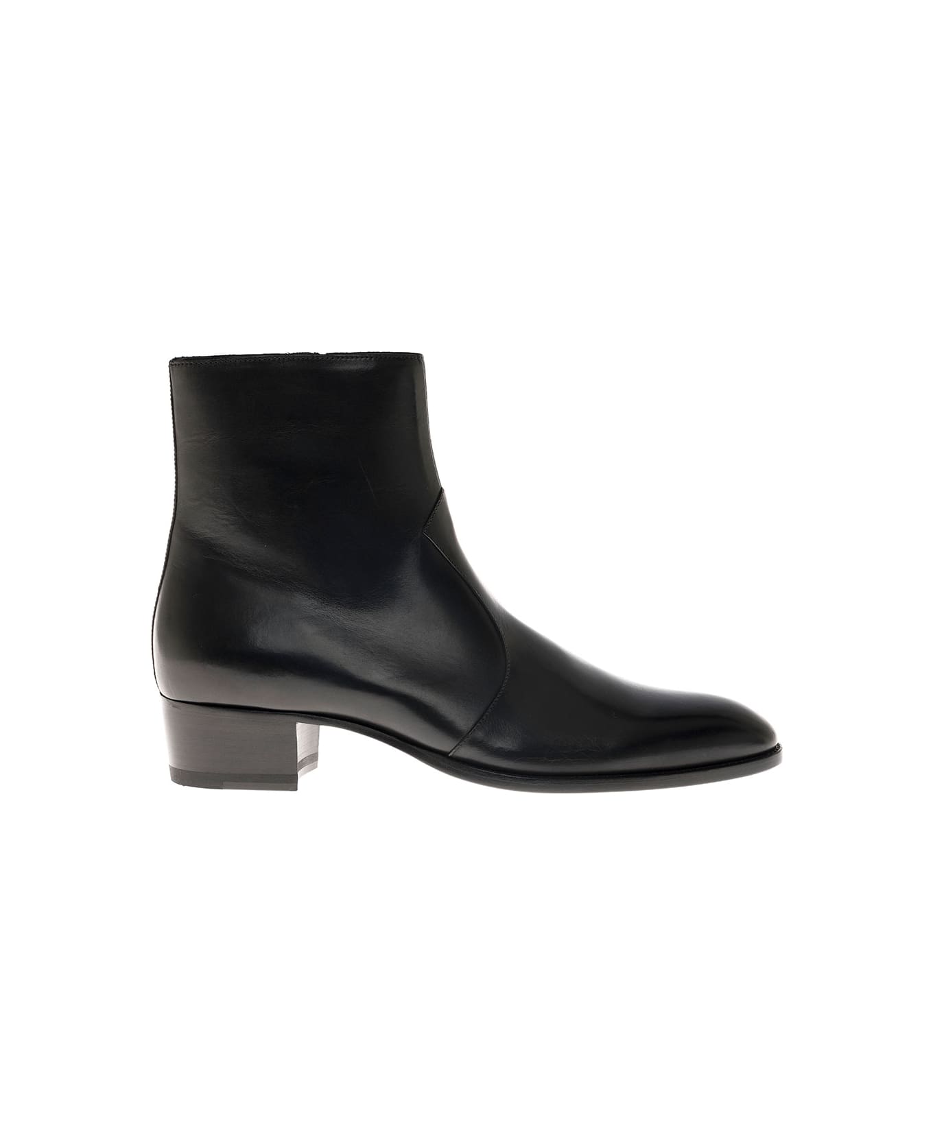 Boots Black Leather Round toe Western stitched upper Layered heel Side zip closure Heel: 4 cm