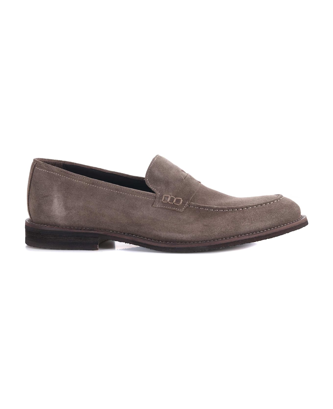 "Jerold Wilton" Loafers in Dark Taupe Suede. Frontal Mask. Embossed Stitching. 25mm Rubber Heel Rubber Sole Size in photo 41