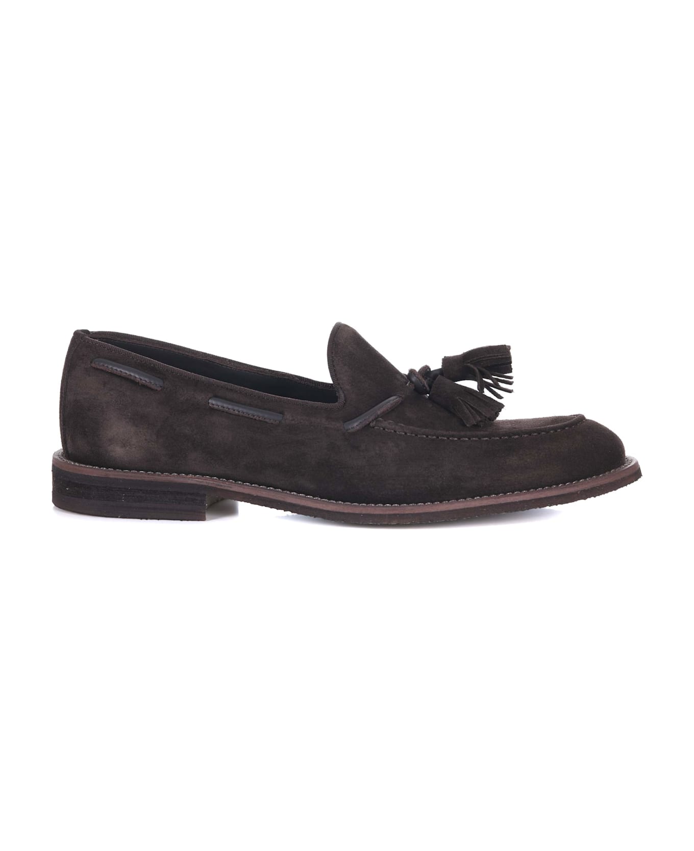 Jerold Wilton Suede Loafers Dark Brown. Leather lace with tassels on the front. Embossed stitching on the toe. 25 mm heel. Rubber sole. Size in photo 41