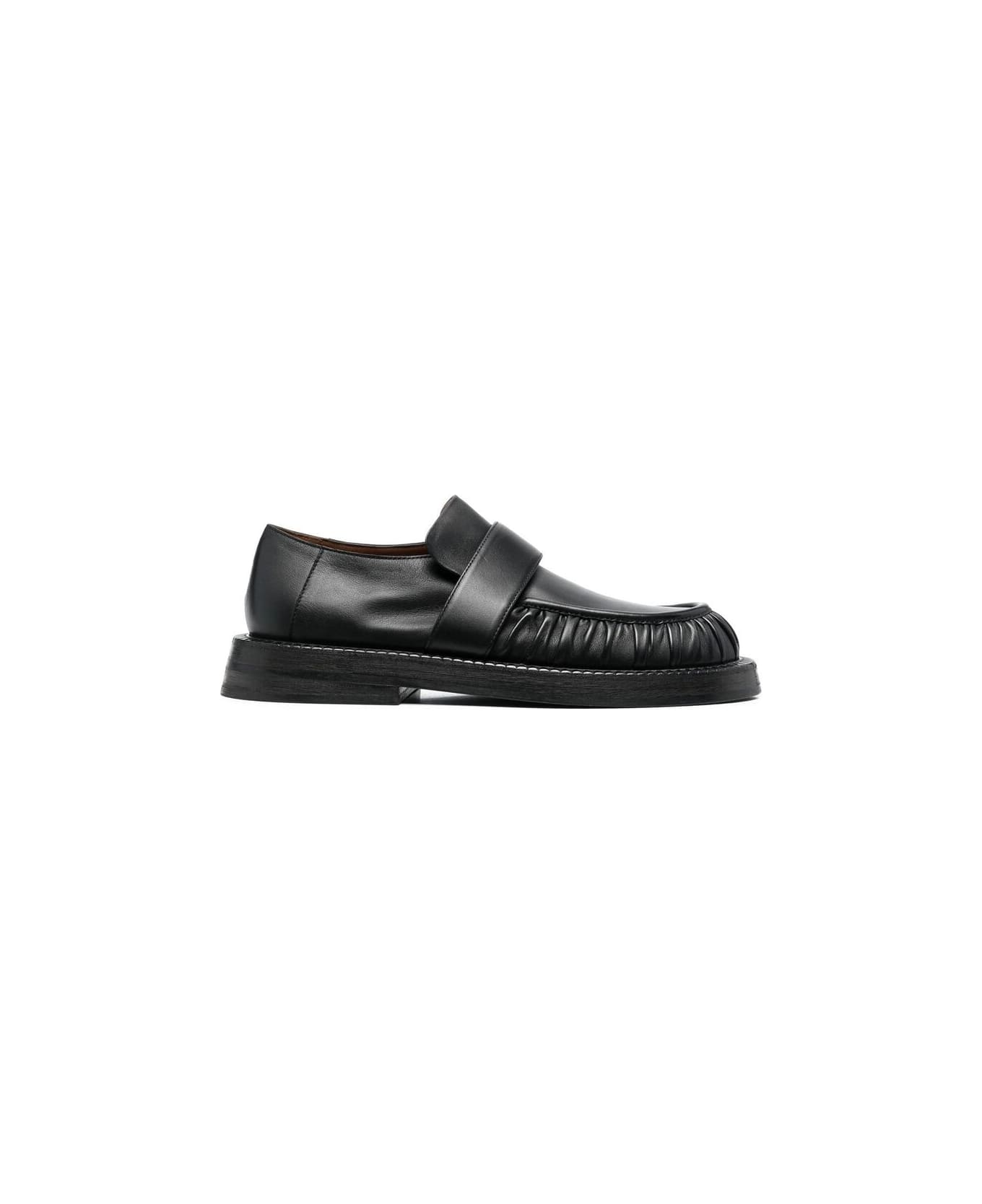 Alluce 35mm loafers from MARSÈLL featuring black, calf leather, slip-on style, ruched detailing, round toe, branded leather insole, low block heel and rubber outsole.