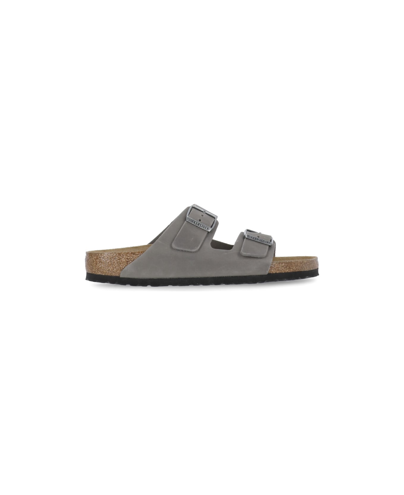 - Grey Birkenstock leather sandal for man and woman - Front belts fastening