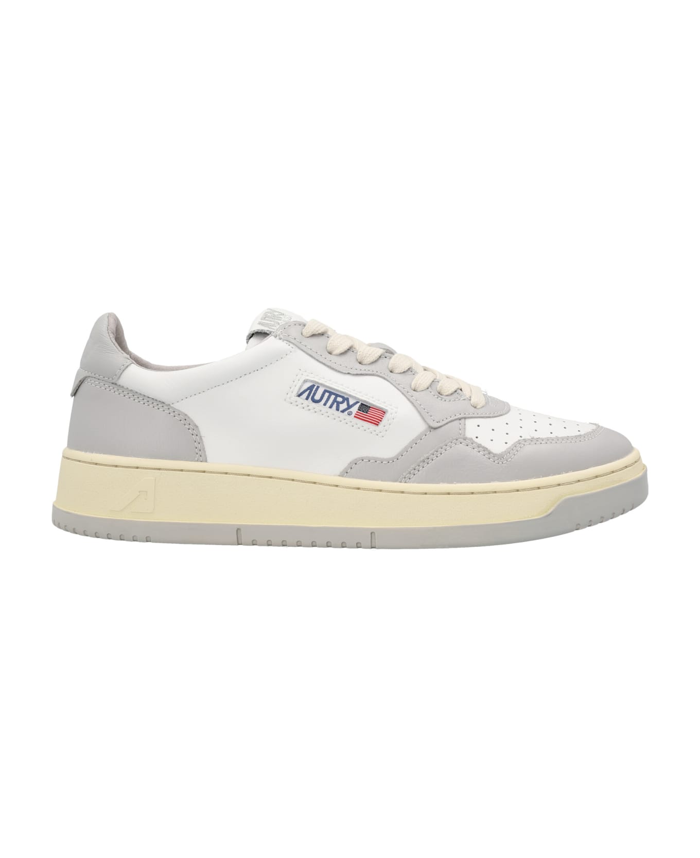 Autry 01 low-top, lace-up sneakers in two-color leather with rubber sole. Composition: 100% leather