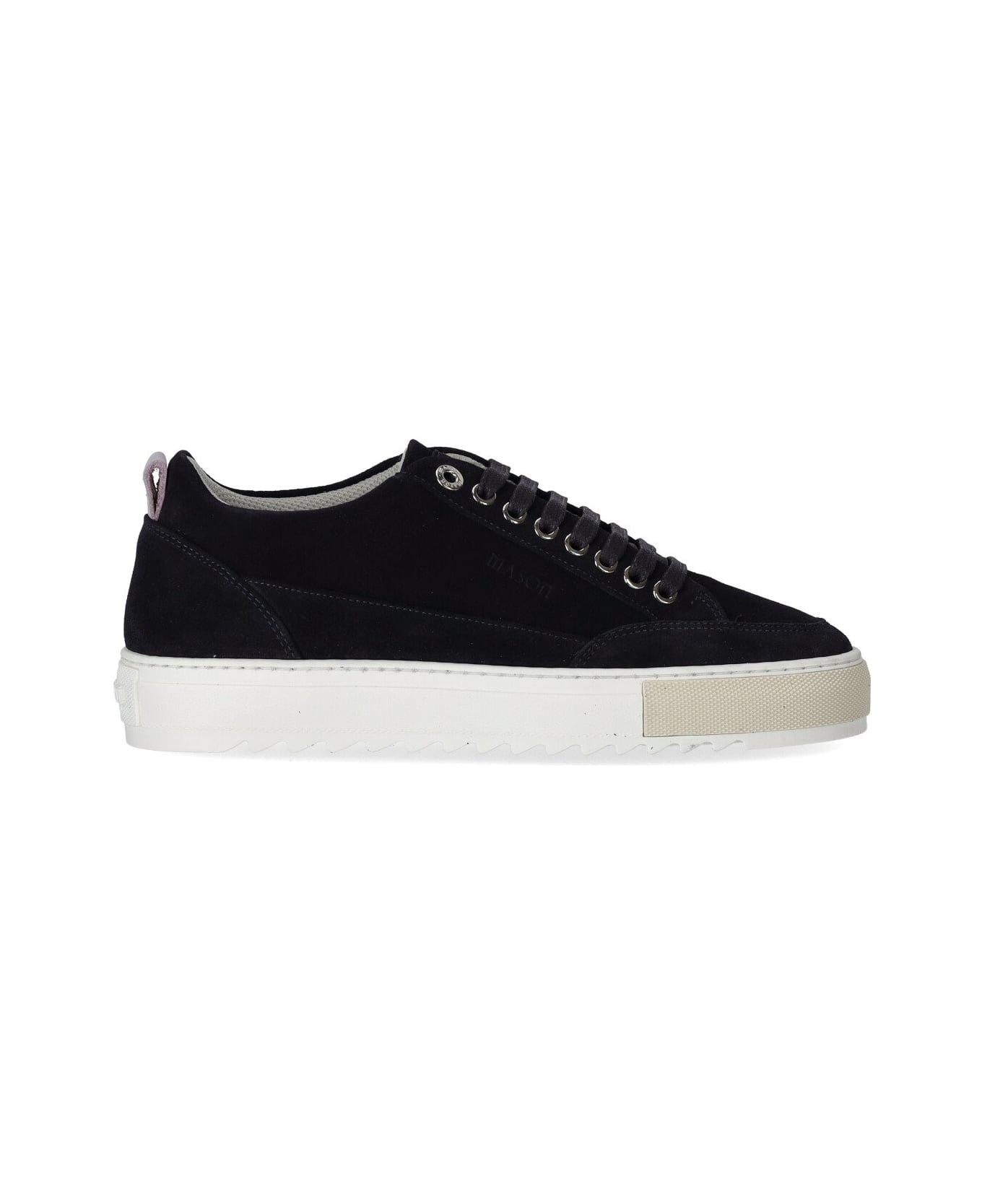 Mason Garments Tia sneaker made in blue suède. Side logo and tongue with embroidery on the back, blue cotton laces and contrasting mesh lining with leather insole. White rubber sole, height 4 cm.