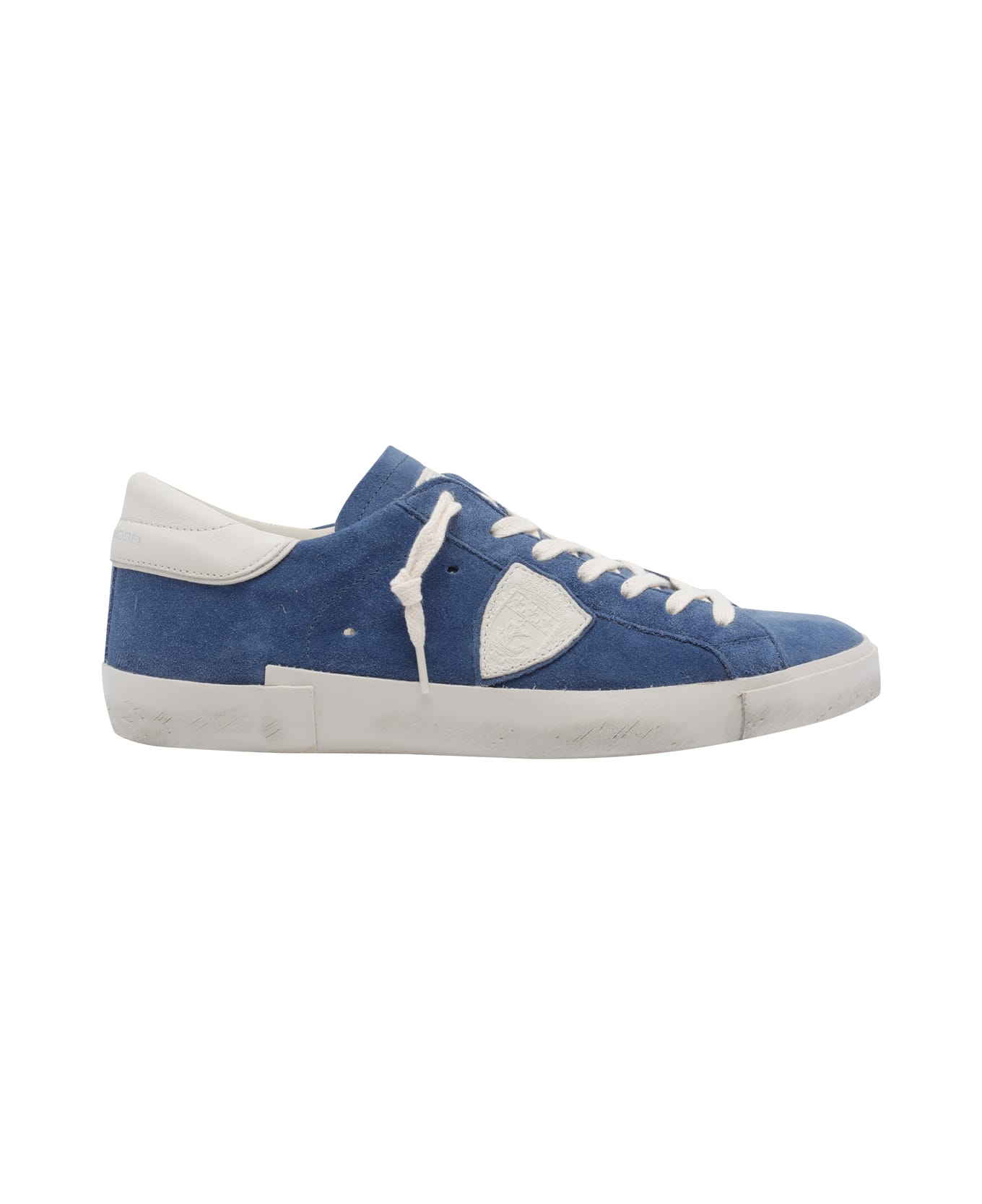Philippe Model denim blue Prsx sneakers, round toe, lateral patch logo, laces closure