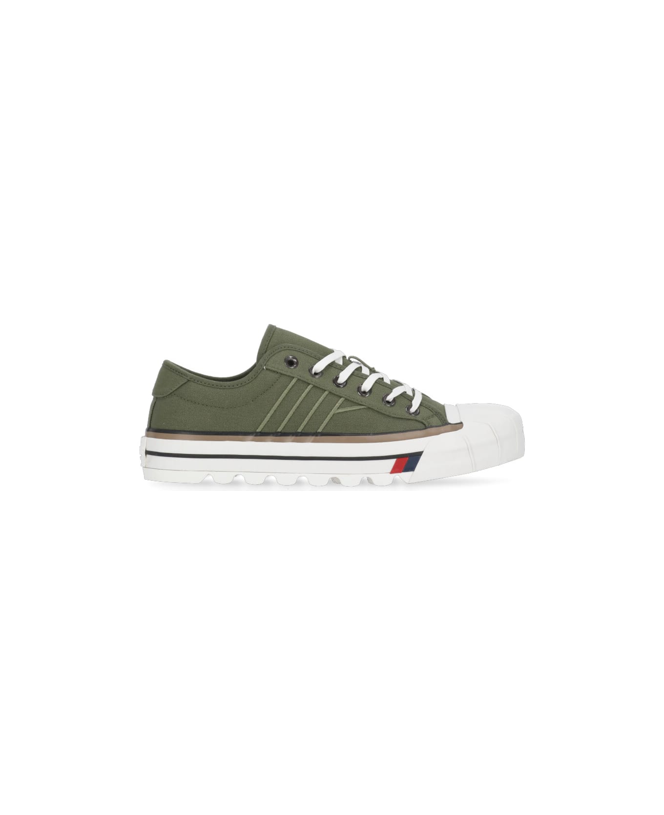 - Green Pro-keds 1949 cotton and leather sneakers for man - Rubber round toe - Front laces fastening - Rear embossed logo - Contrasting colour raised sole (3. 5 cm)
