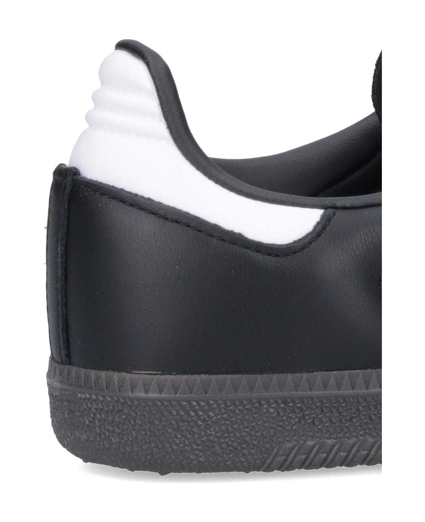 Adidas 'Samba OG' Sneakers, black leather sneakers with tone-on-tone suede details, round toe, lacing, logo label tongue, three iconic side sneakers, a white back tab and rubber sole.