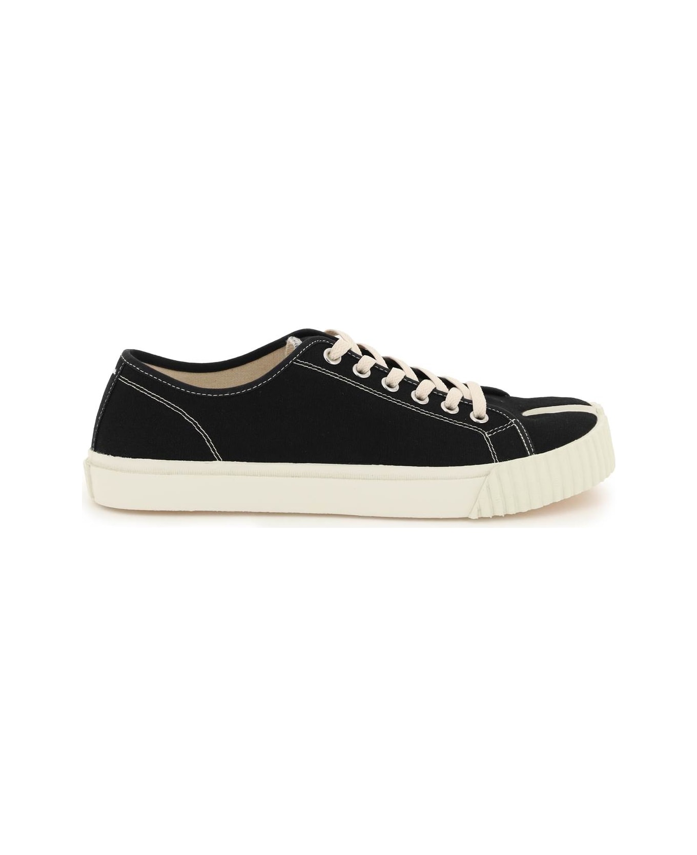 Maison Margiela Tabi sneakers crafted in cotton canvas with contrasting stitchings and characterized by the iconic 'cut' on the toe. Silver-tone metal eyelets, logo print on the tongue, fabric lining, removable leather insole and rubber sole with logo on the back. Signature white stitch on the back.