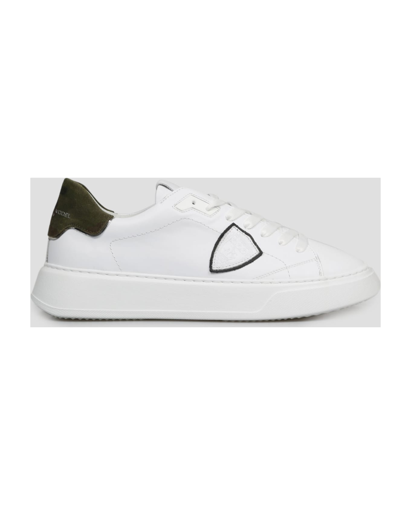 Philippe Model Temple Low sneakers, in smooth leather with camouflage suede insert on the back. - Logo patch on the outside - Round toe - Lace up - Embossed logo label on the front tongue - Contrasting camouflage suede insert with embossed logo - Rubber sole - Made in Italy - Calfleather