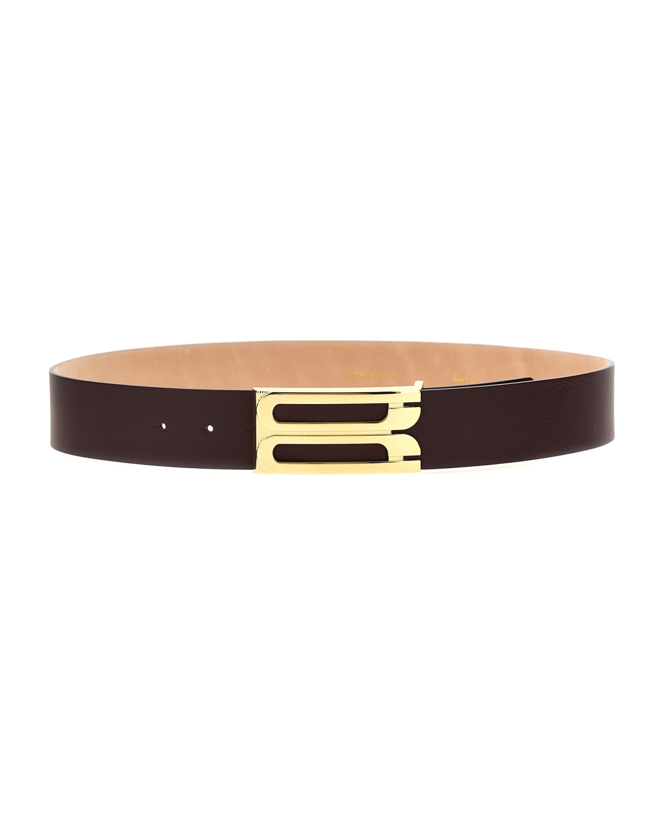 'Jumbo Frame' leather belt with gold metal logo buckle.