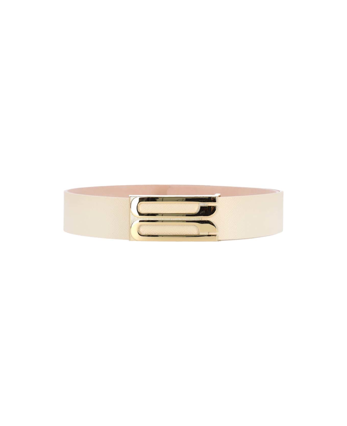 Victoria Beckham Jumbo Frame belt in white hammered calf leather with gold metal logo buckle on the front, adjustable.